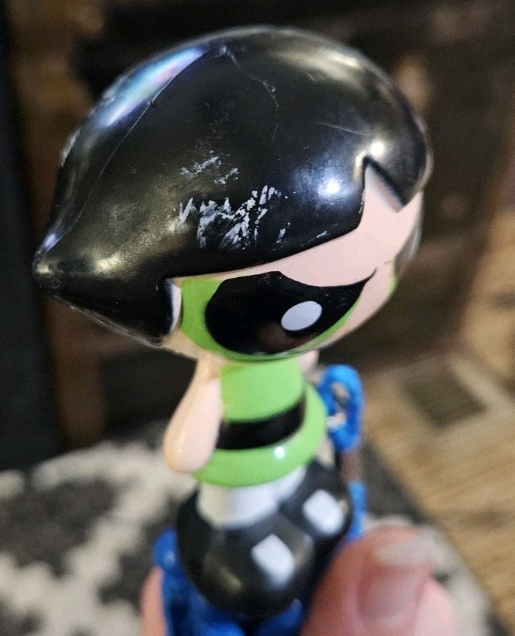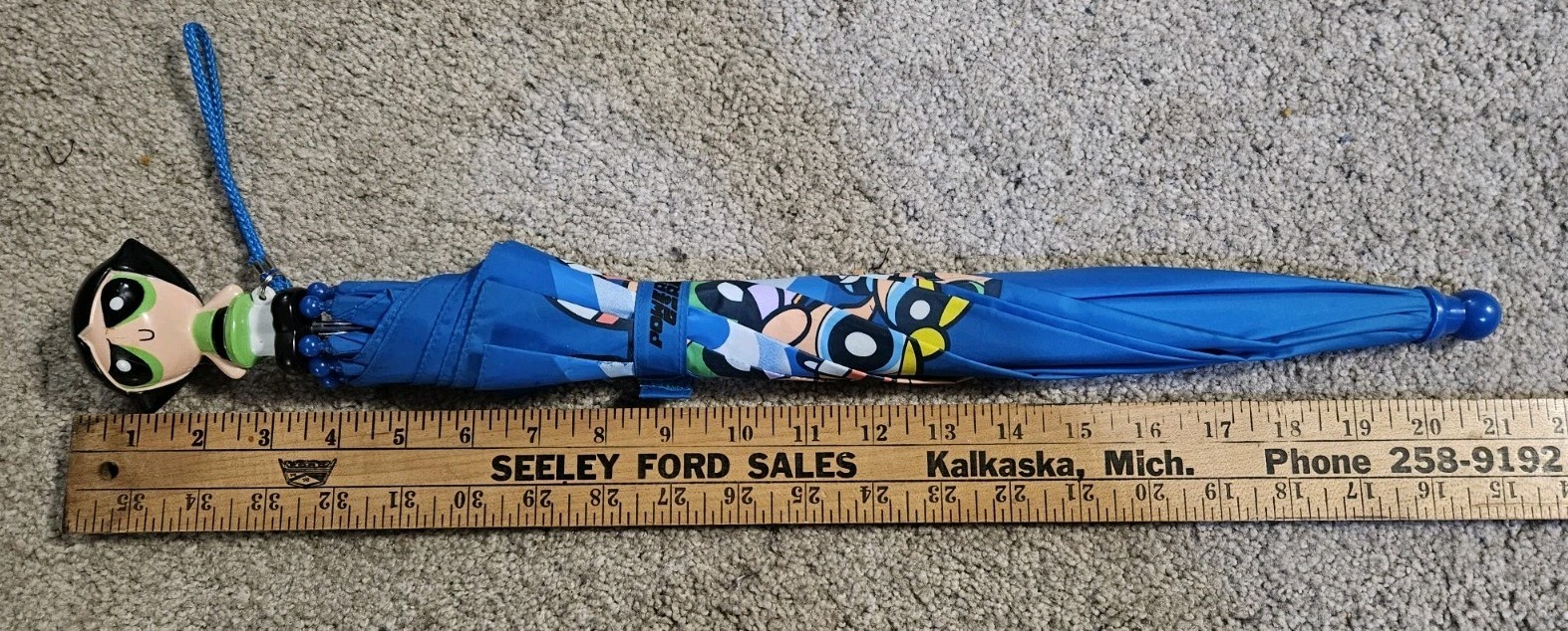 как выглядит Powerpuff Girls Blue Umbrella - Buttercup Handle - Hearts Hugs Pattern - 2001 фото