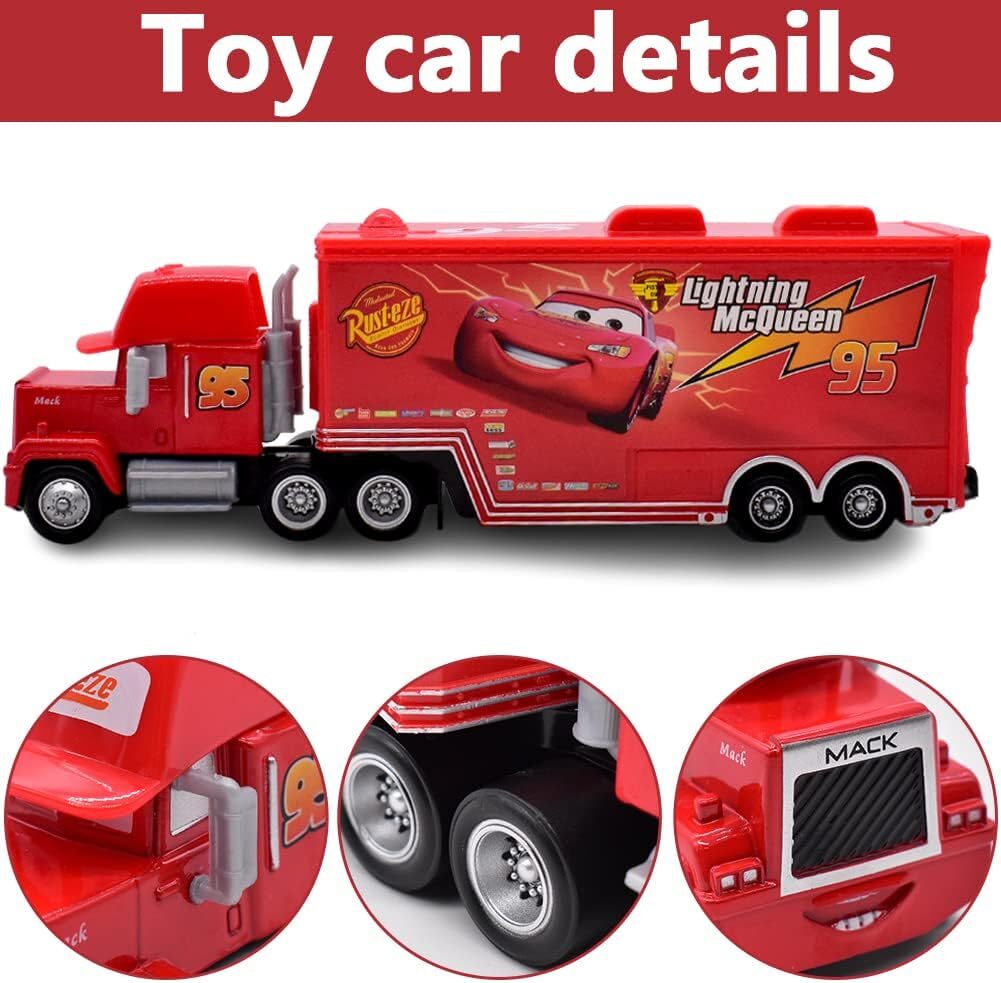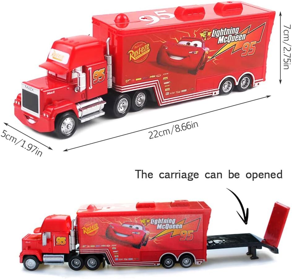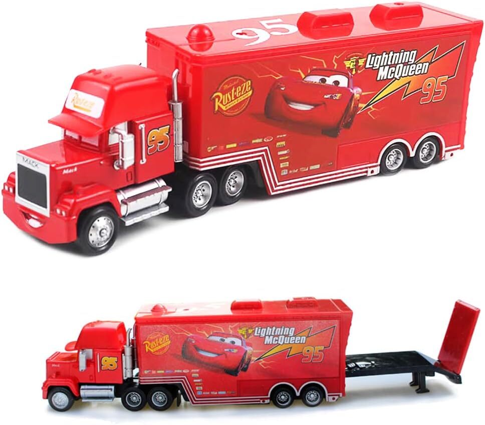 Set of 2 Disney Pixar Cars No.95 Lightening Mcqueen Mack Truck Toys 1:55 Car