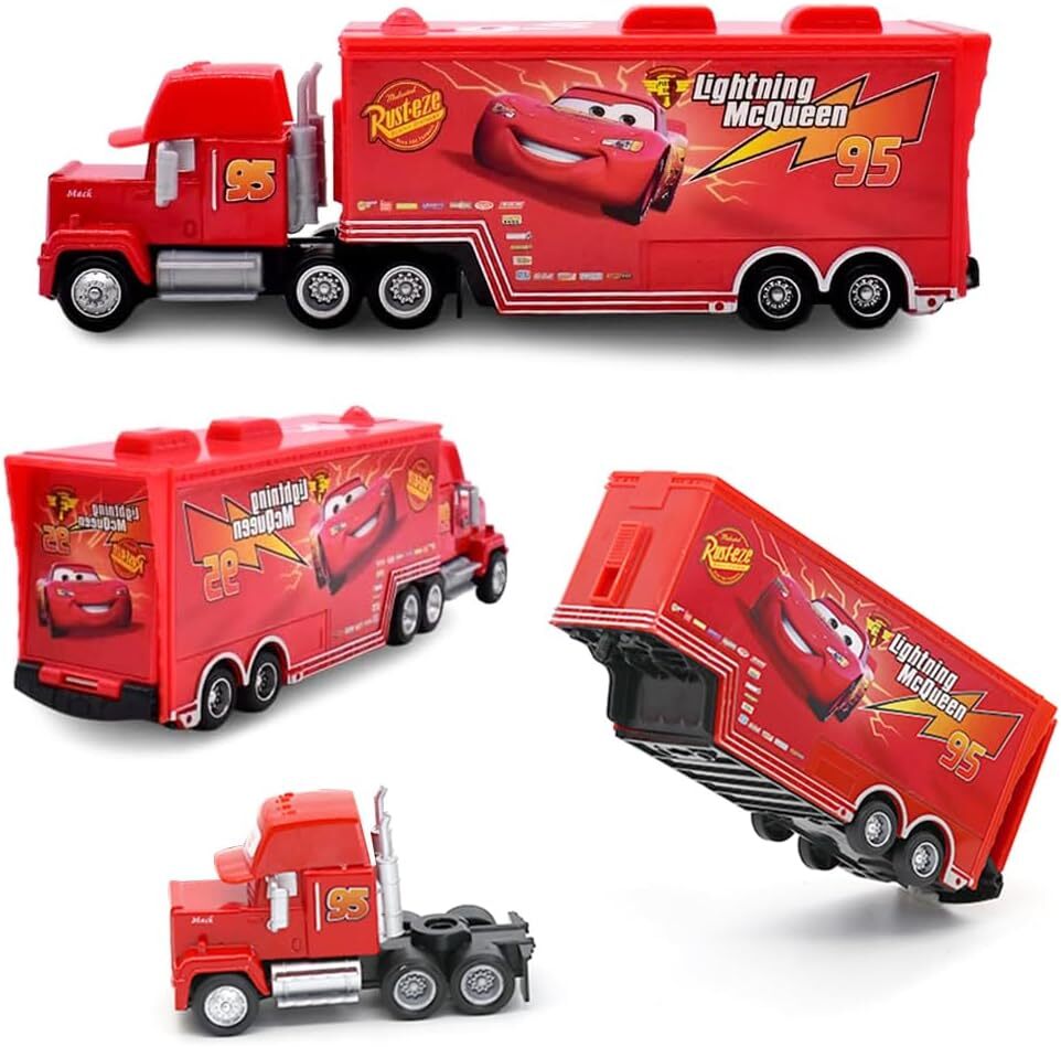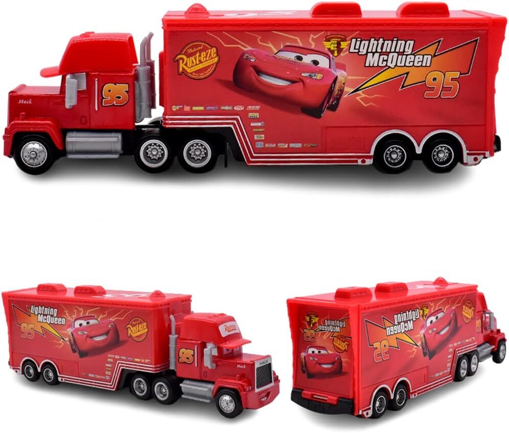 как выглядит Set of 2 Disney Pixar Cars No.95 Lightening Mcqueen Mack Truck Toys 1:55 Car фото