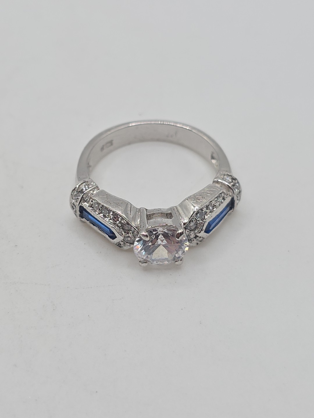 Sterling Silver 925 Blue White CZ Ring Size 6