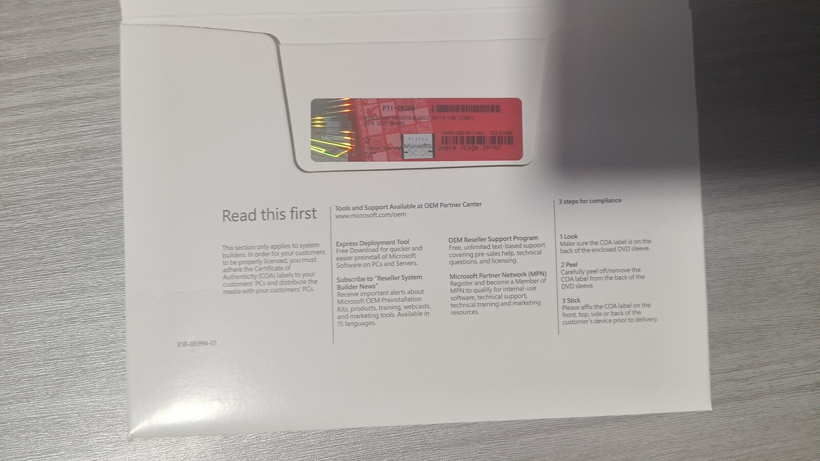 как выглядит Microsoft Windows server 2022 datacenter 64Bit 48 Core License Key DVD COA USA фото