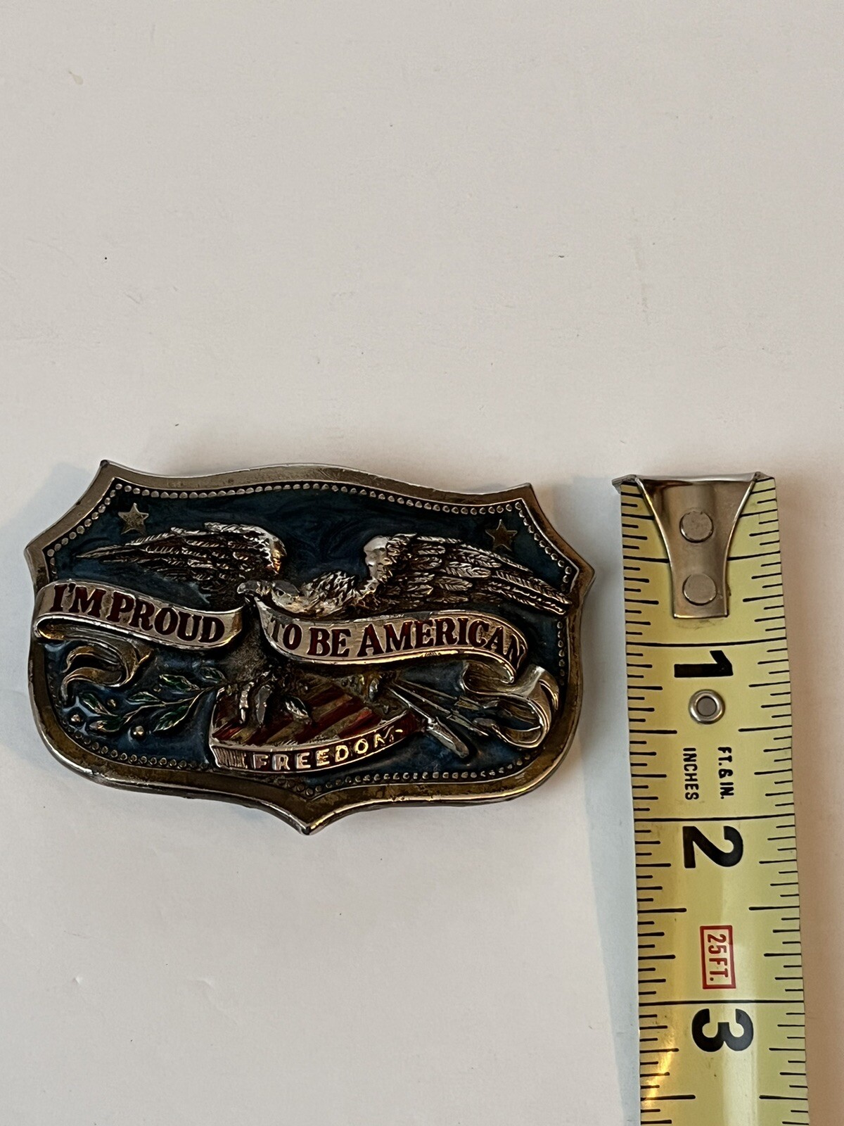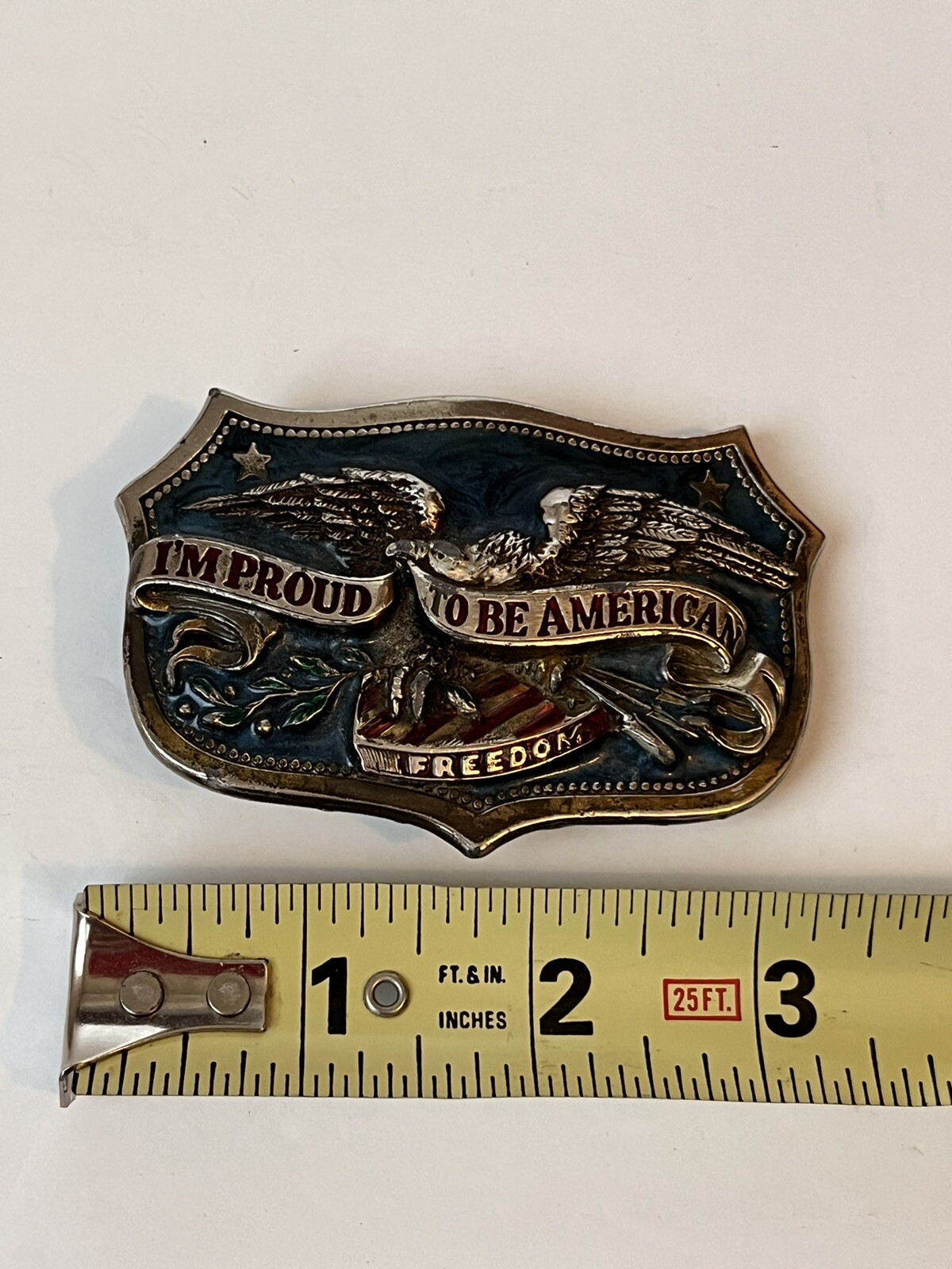 как выглядит Vintage 1984 Im Proud To Be American Freedom Limited Serial H1459 Belt Buckle фото