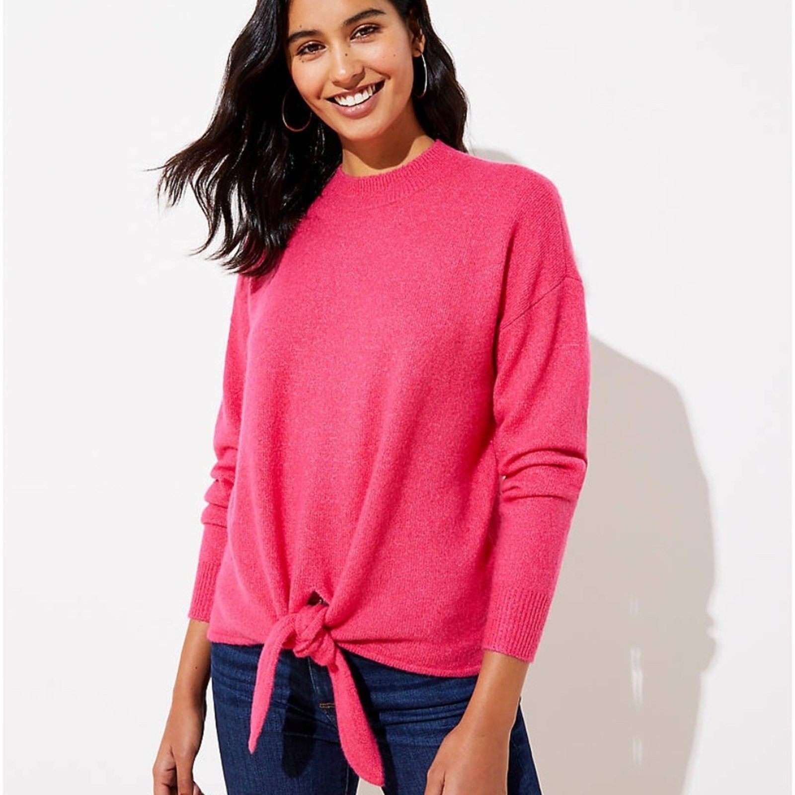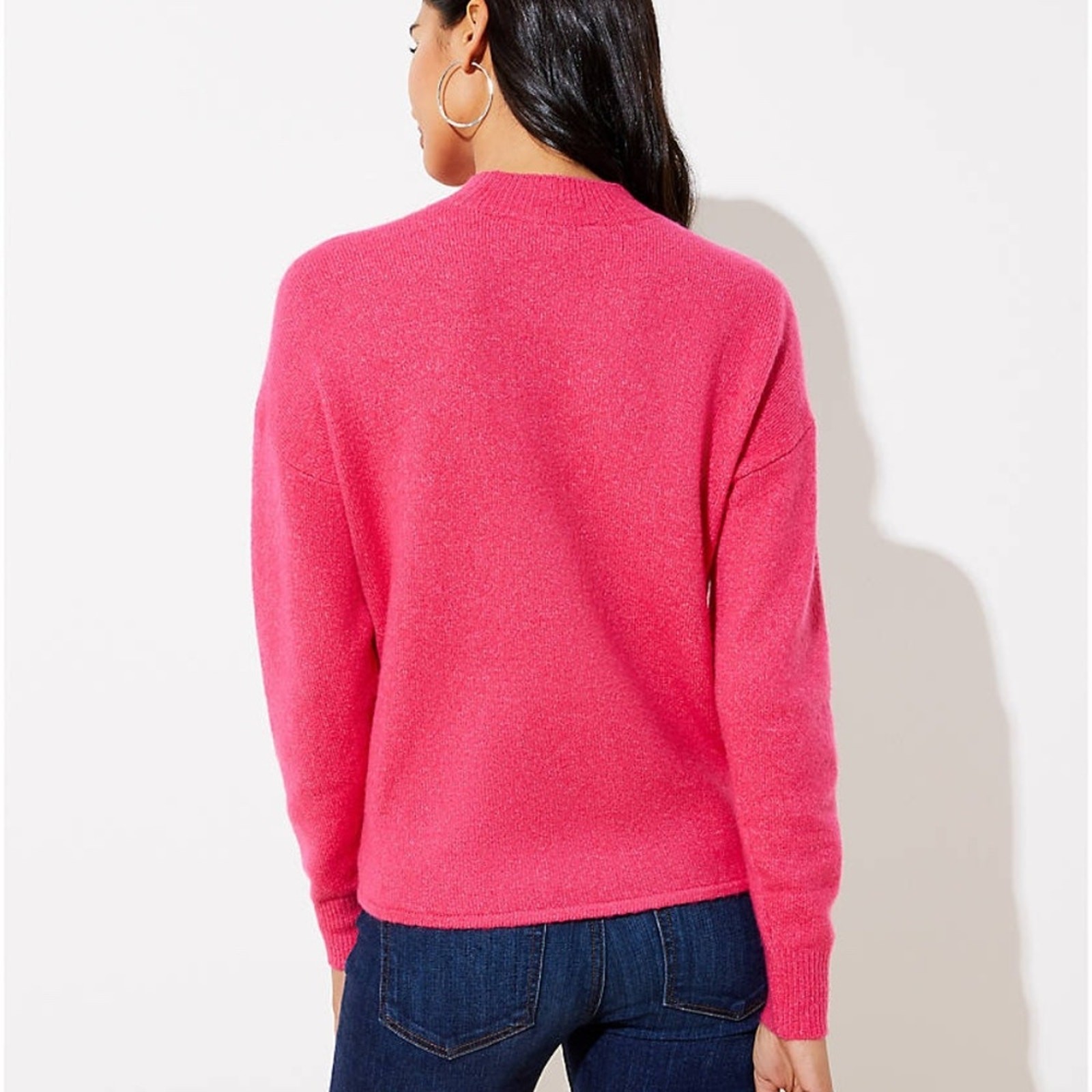 NWT LOFT Fuchsia Pink Tie Hem Soft Mock Neck Sweater - SIZE S