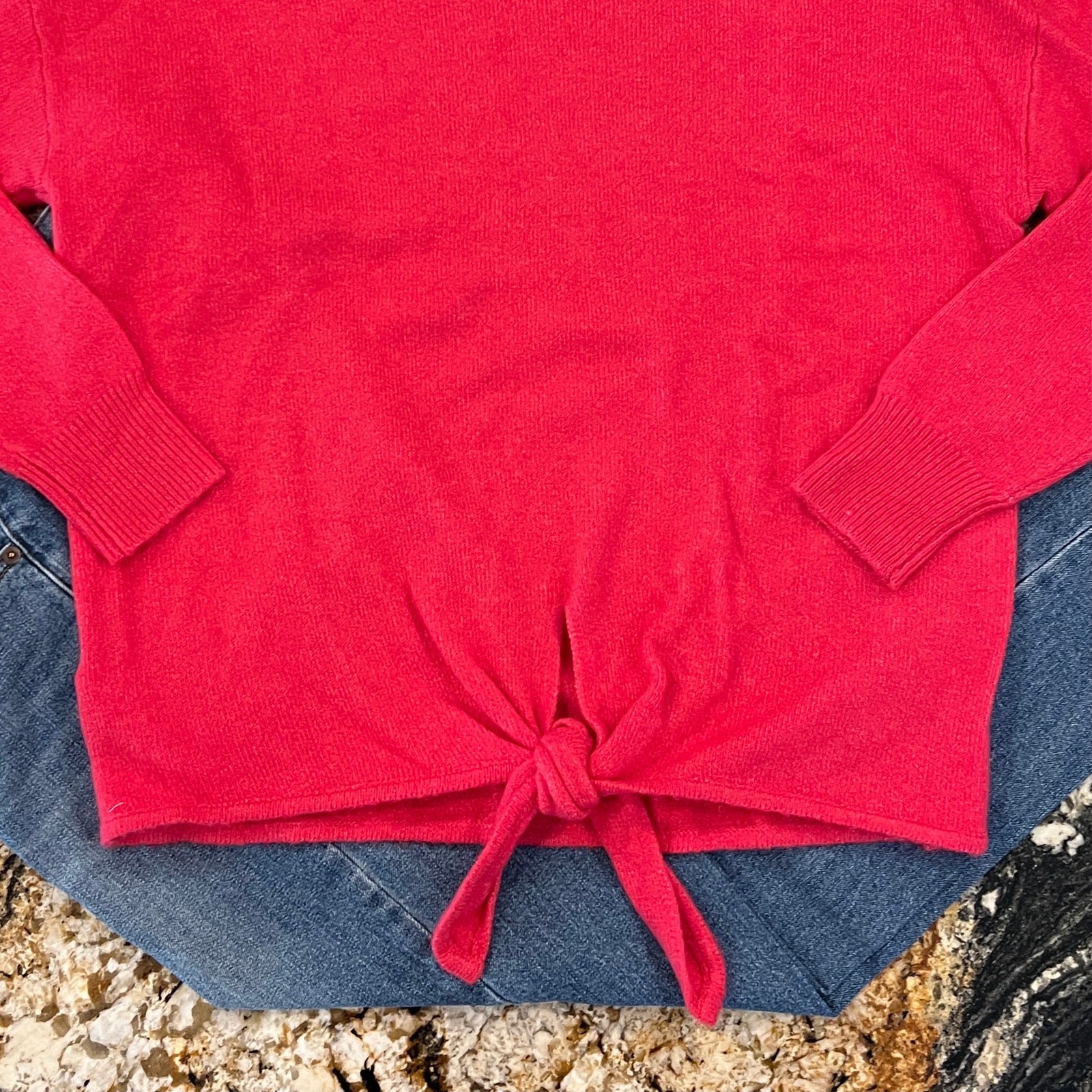как выглядит NWT LOFT Fuchsia Pink Tie Hem Soft Mock Neck Sweater - SIZE S фото
