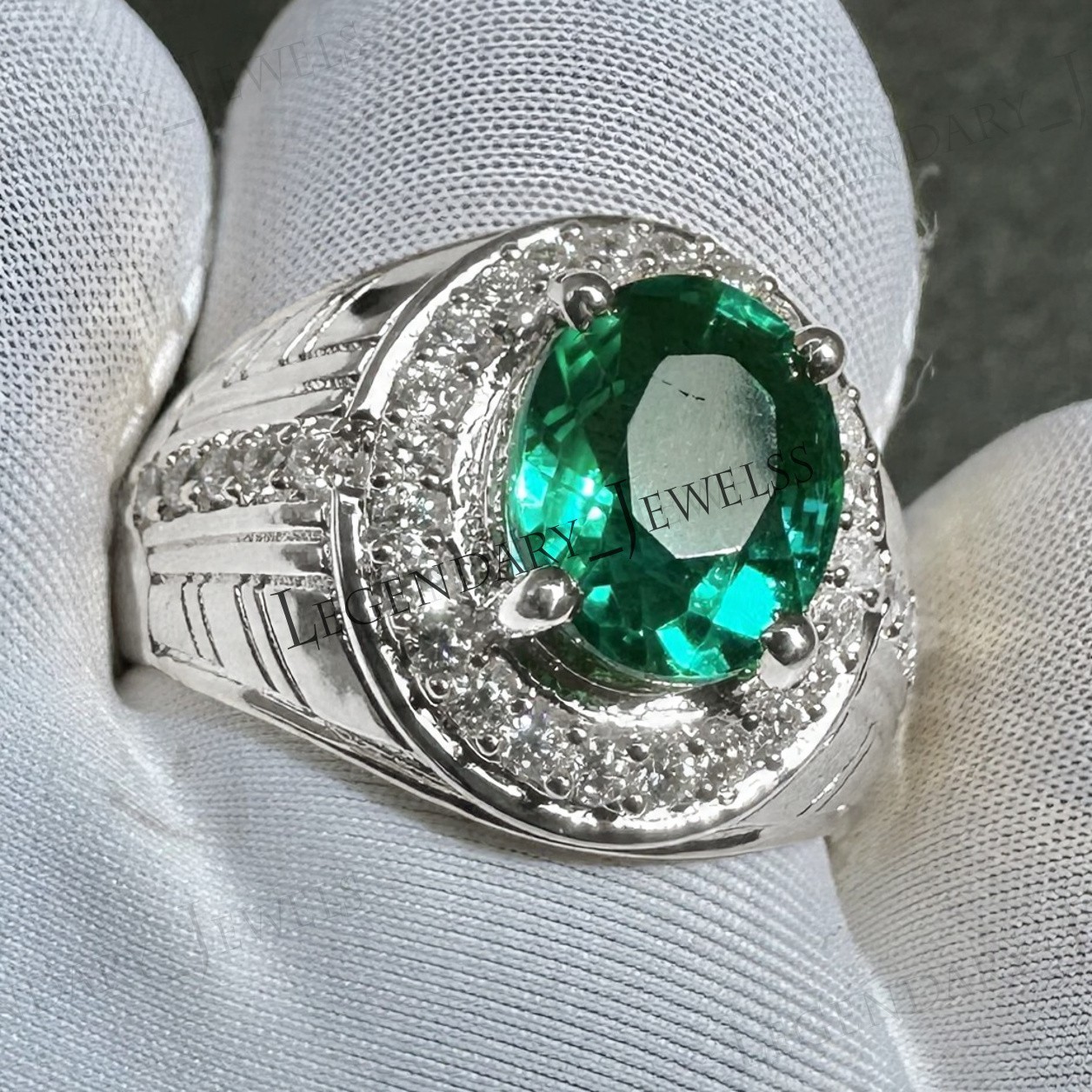 AAA Green Emerald Handmade Silver Ring - 925 Sterling Silver - Engagement Ring