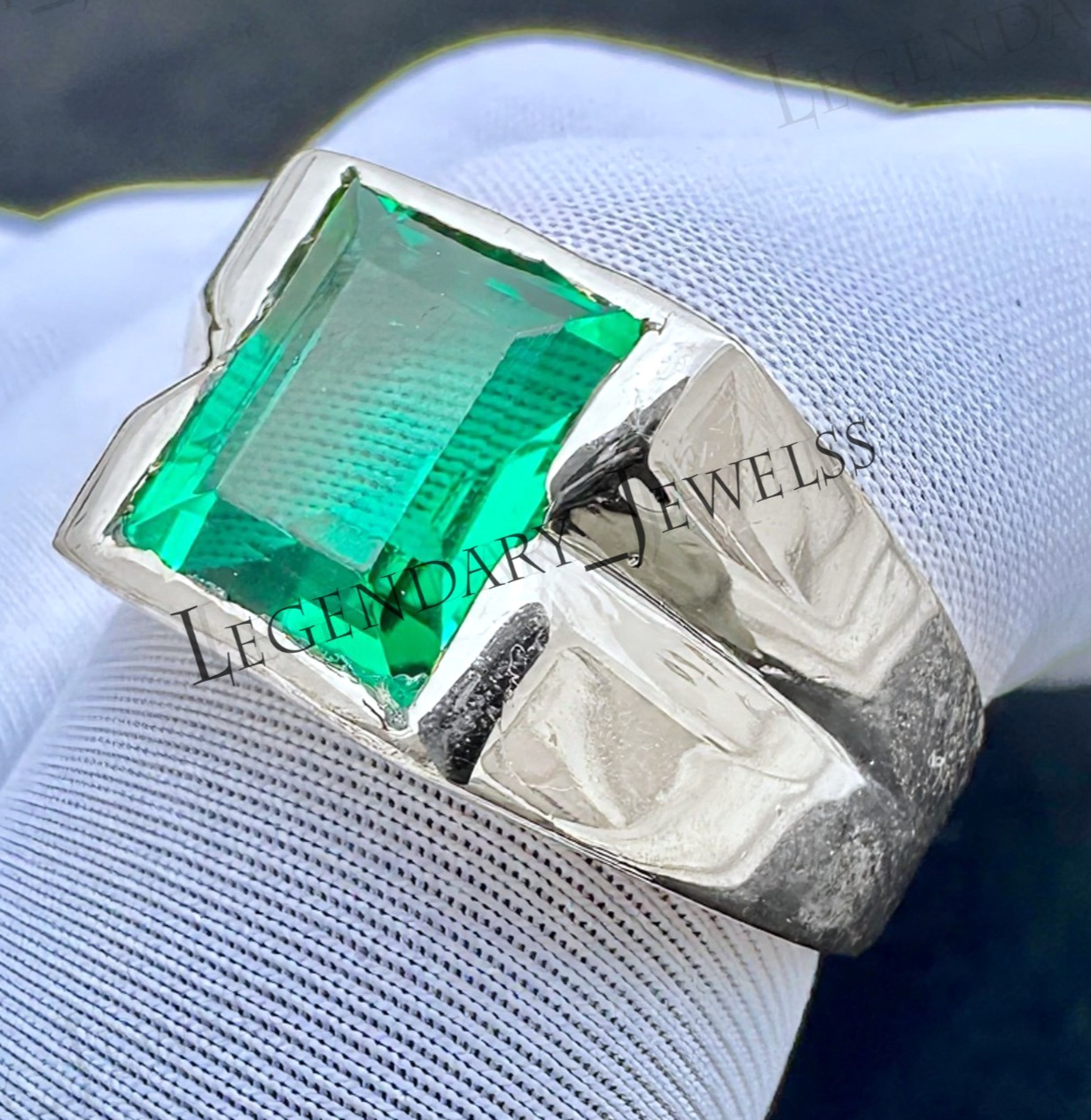 как выглядит Green Emerald Gemstone Ring For Men