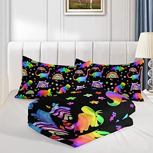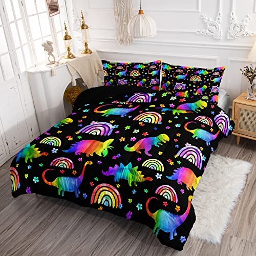 Rainbow Dinosaur Comforter Set Colorful Dino Bedding Set for Queen Dinosaur 1