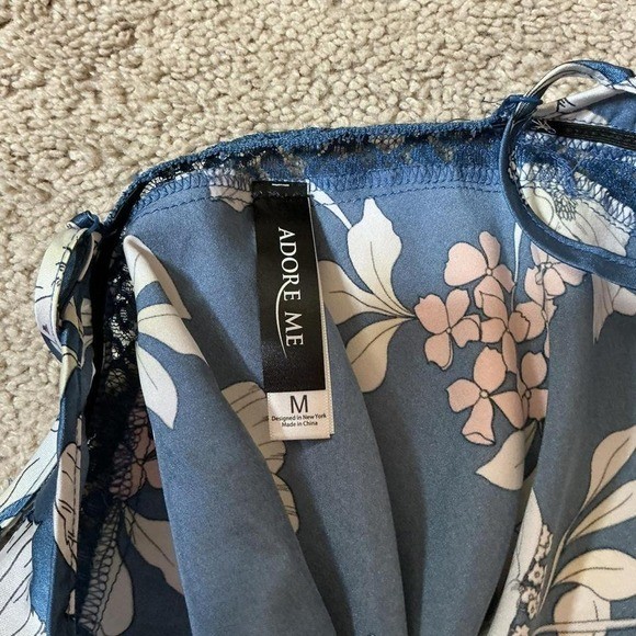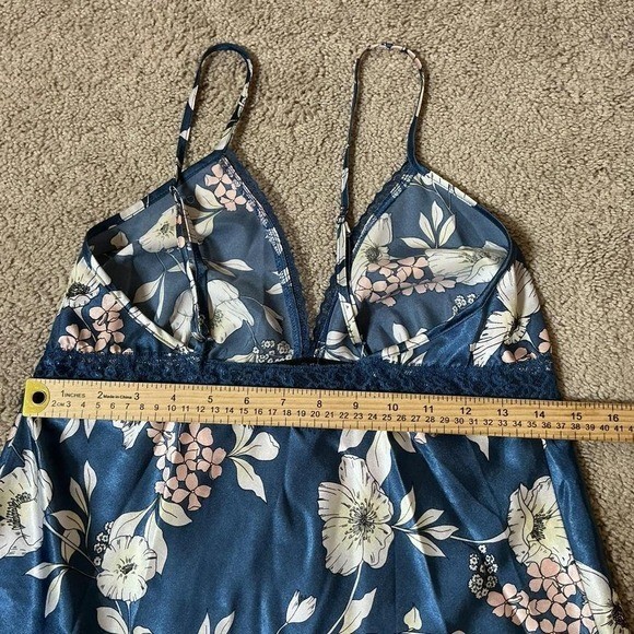 как выглядит Adore Me Navy Floral Lace Trim Cami Slip Nightgown Mini Dress Size M фото