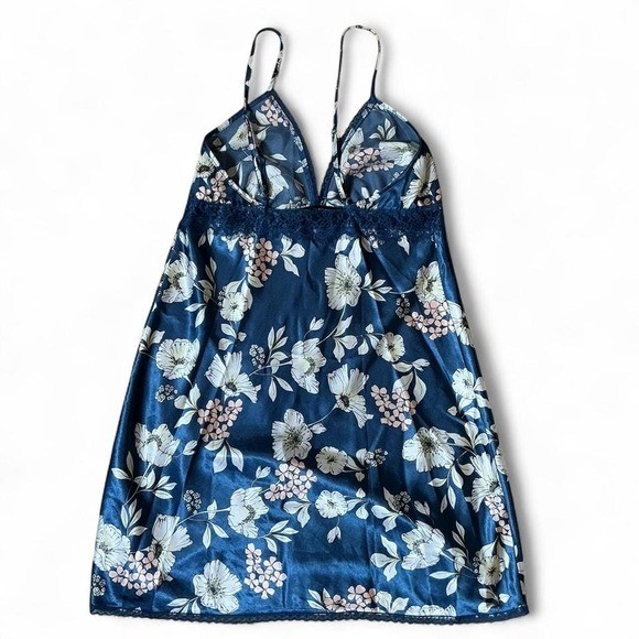Adore Me Navy Floral Lace Trim Cami Slip Nightgown Mini Dress Size M