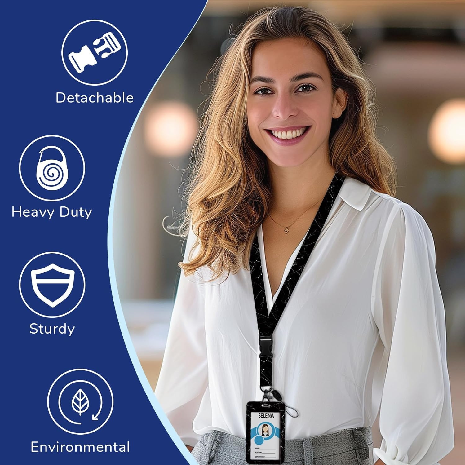 Black Marble Lanyards for Id Badges, Cute Badge Reel Heavy Duty with Carabiner C