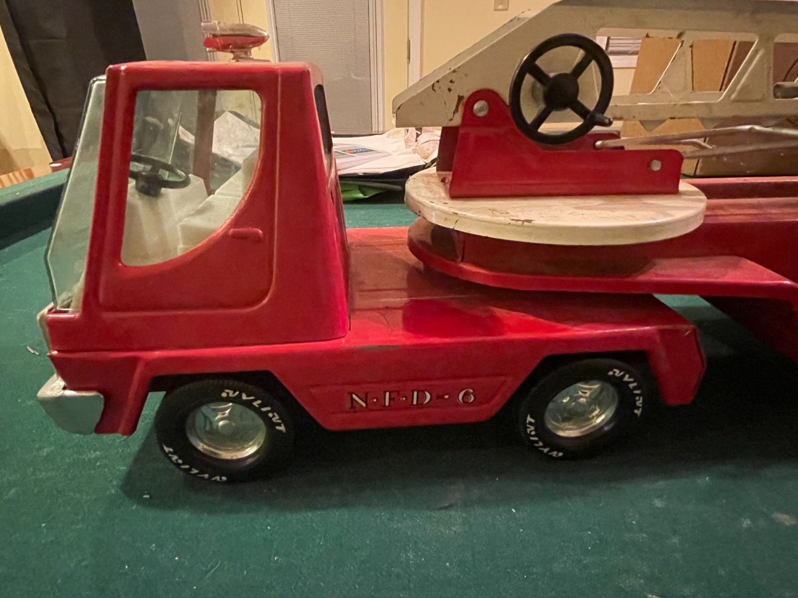 как выглядит Vintage NYLINT Fire Department Hook And Ladder Truck 33 Pressed Steel 1960/70s фото