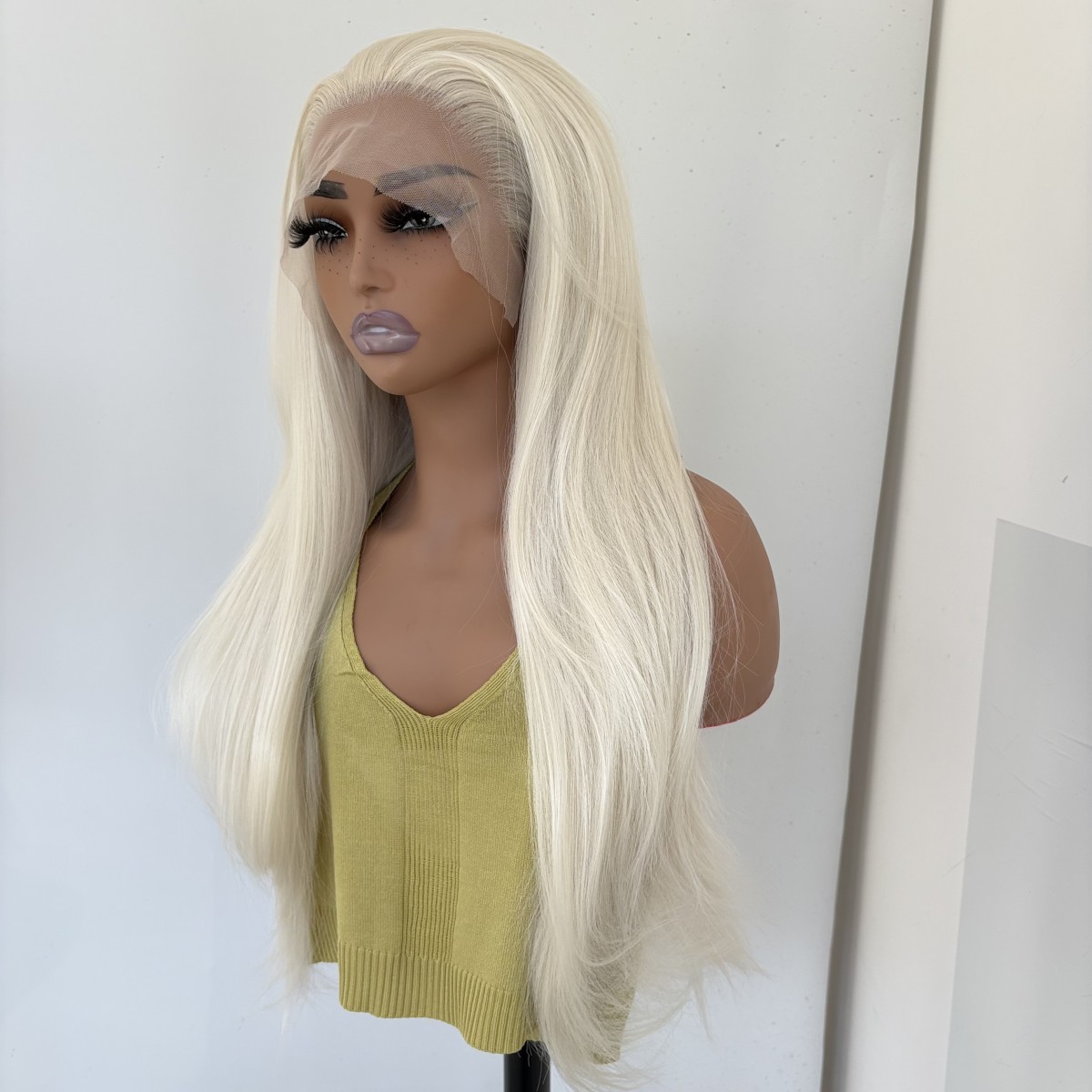 Platinum blonde Lace frontal wigs Heat Resistant Synthetic Hair Long Straight 26
