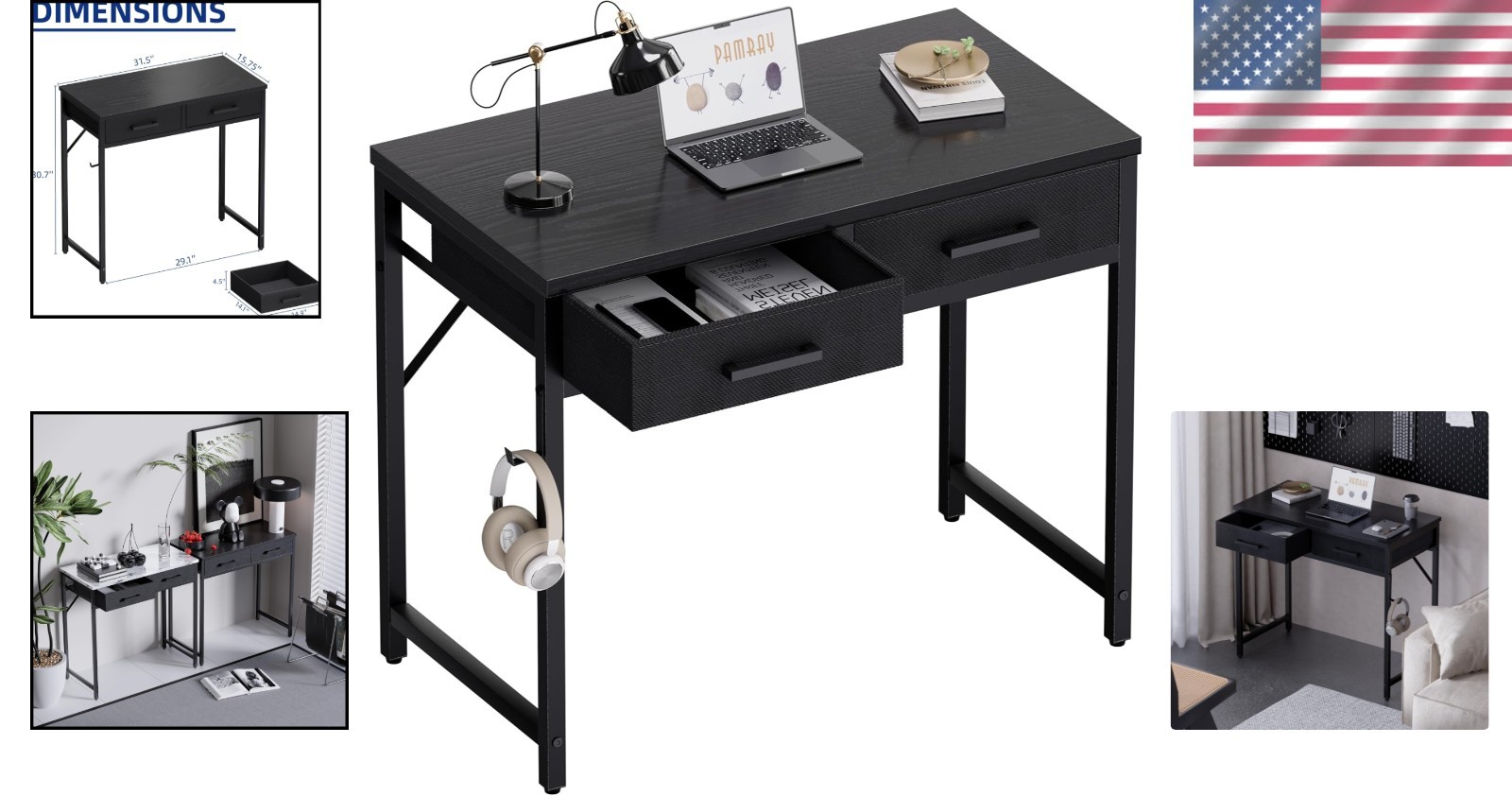 Small Computer Desk with 2 Drawers for Bedroom Study Home Office Black
