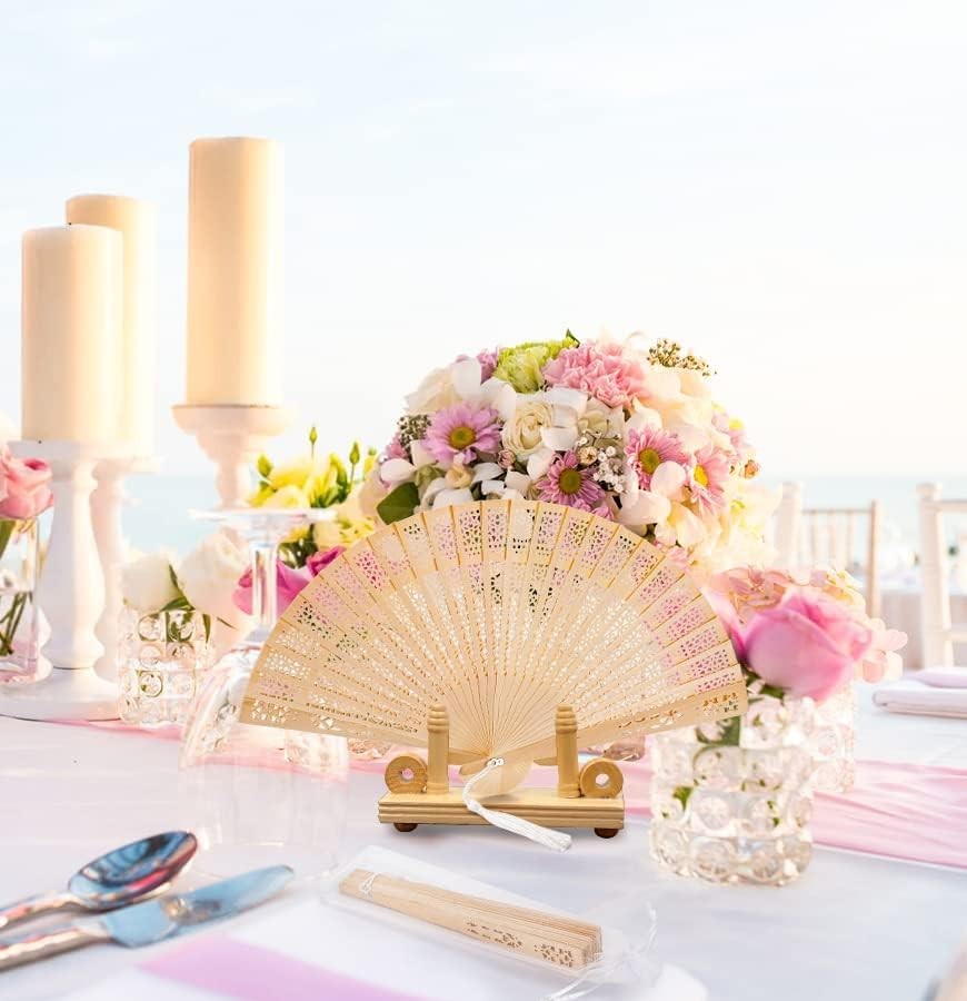 25 Pieces Sandalwood Fans, Wooden Handheld Folding Fan with Tassels and Prese...