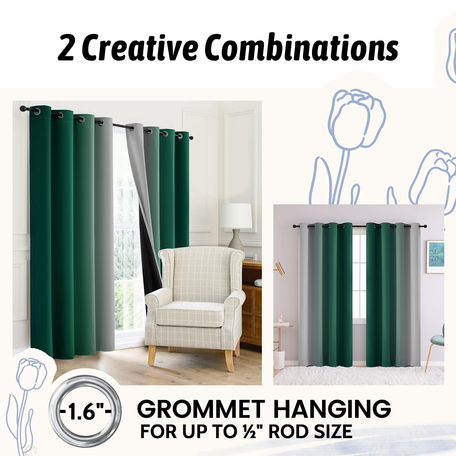 100 Blackout Curtains Drapes Ombre Green Curtains 84 inches Long 2 Panels ...