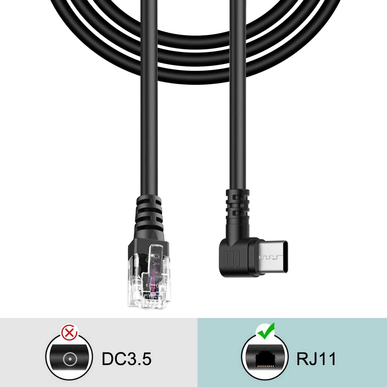 USB-C to RJ11 Power Cord, Radar Detector Cable, for Replacing Radar Detector ...