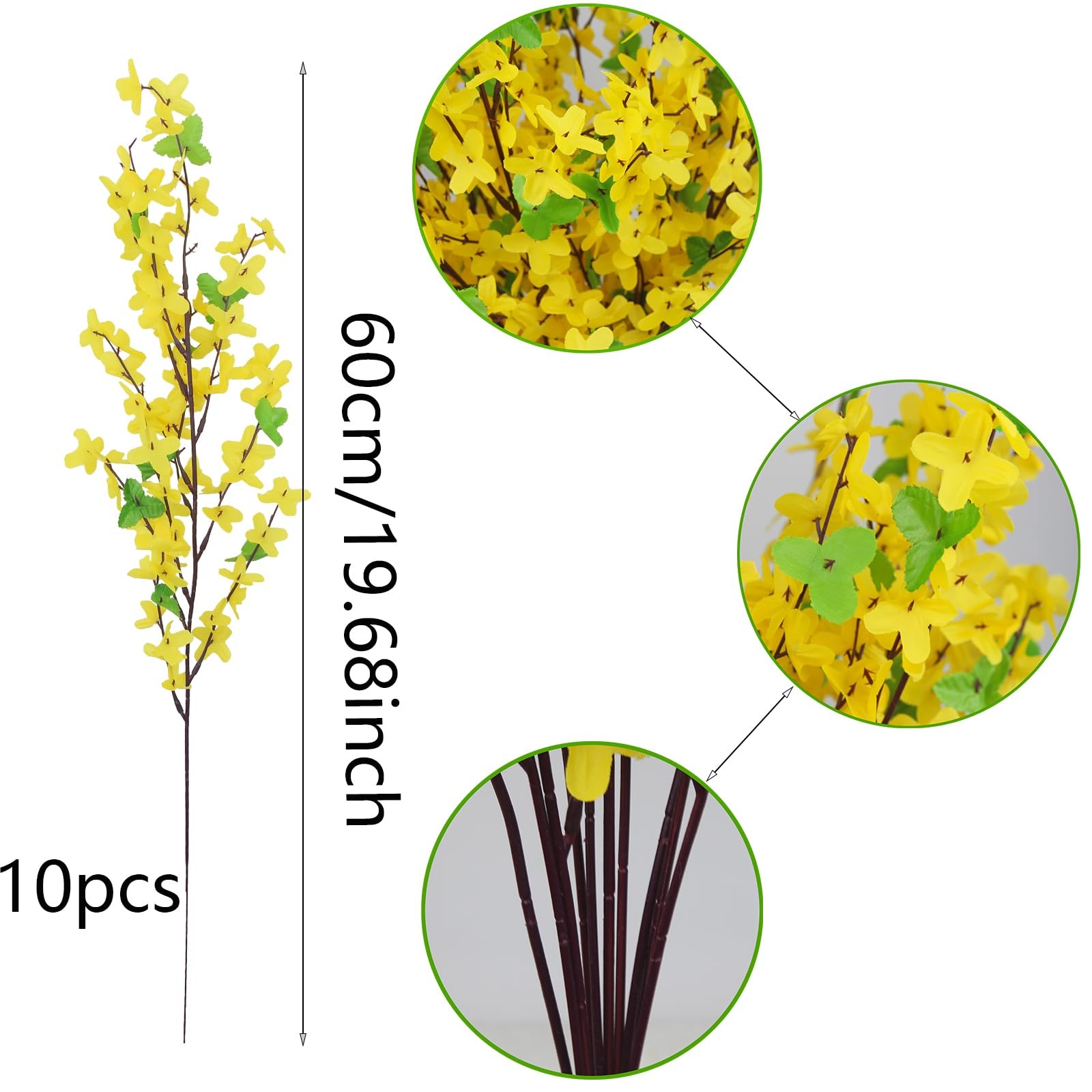 10 Pcs Artificial Forsythia Flower Branches Artificial Flowers Yellow Silk Fo...