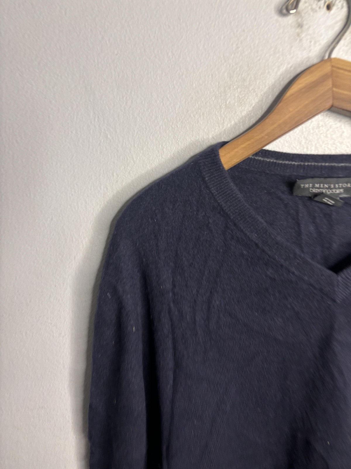 как выглядит The Mens Store Bloomingdales Sweater Mens 2XL Navy Cashmere V Neck Pullover фото