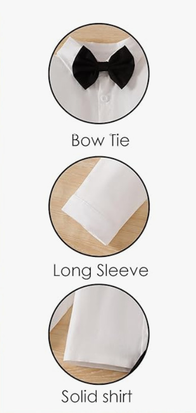 Toddler Boys Formal Suit, Long Sleeve Dress Shirt Bowtie Suspender Pants 4T-5T