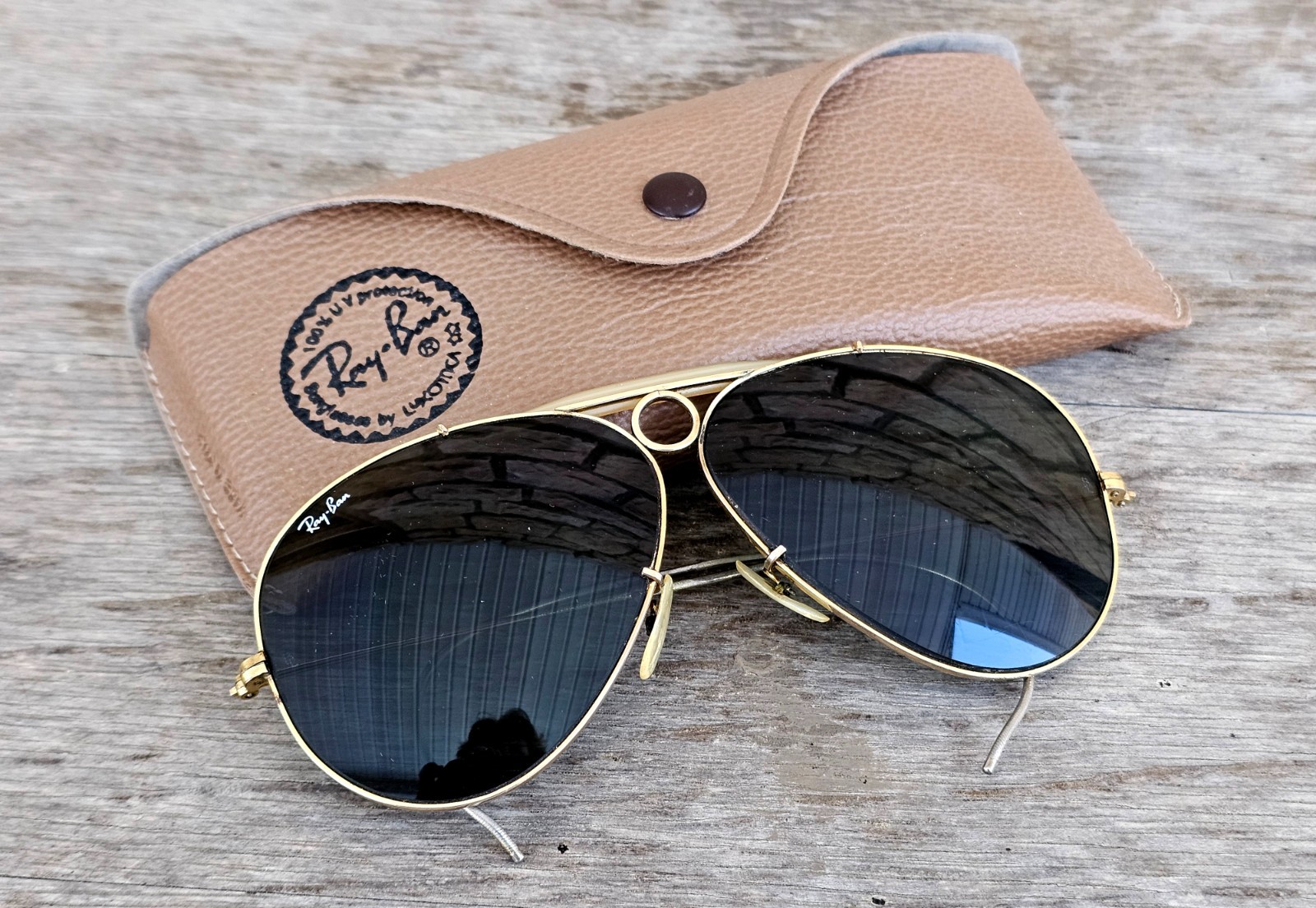 как выглядит Vintage Ray Ban Bullet Hole Aviator Sunglasses 1/30 10K Gold Bausch Lomb 1960s фото