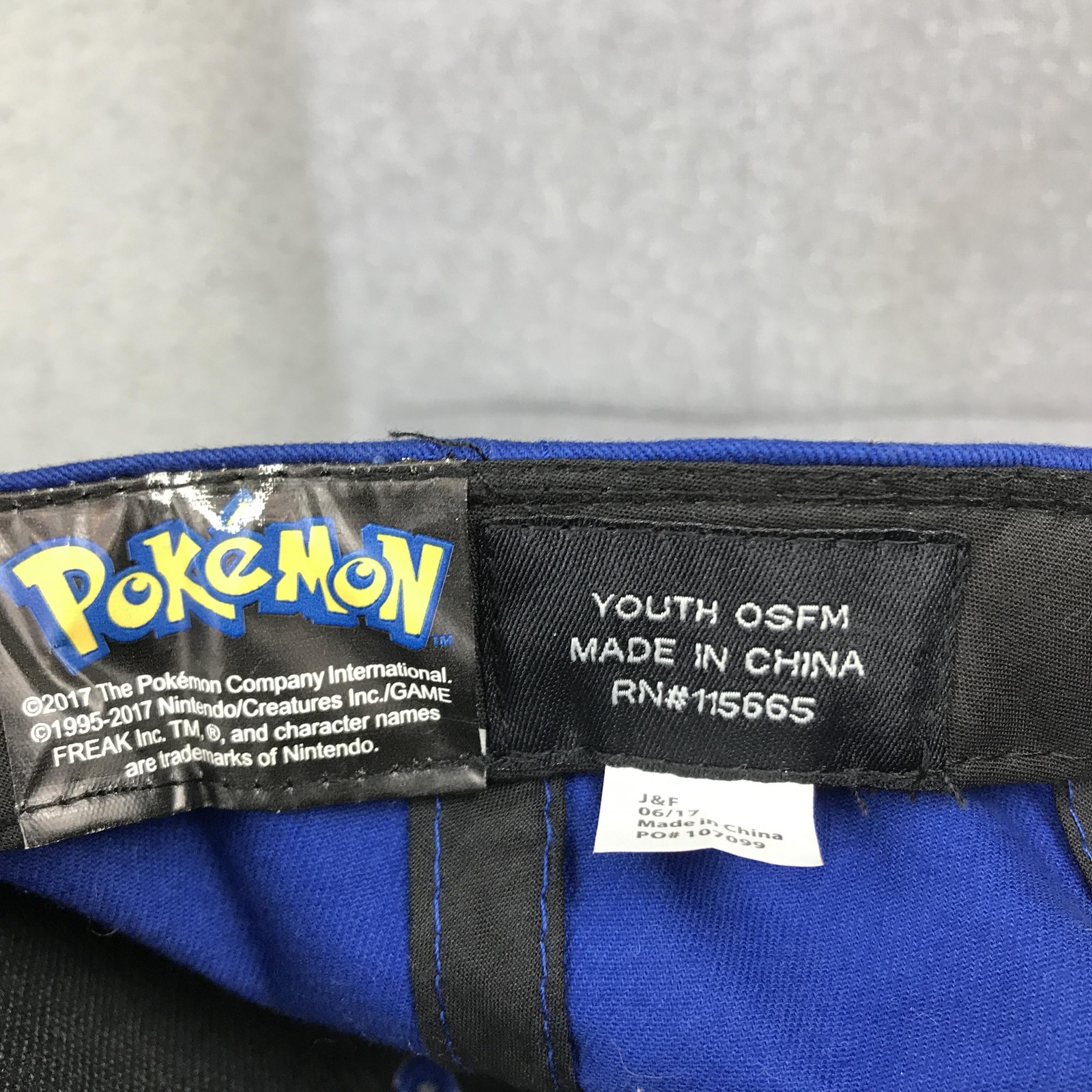 Pokemon Pikachu Hat Cap Snap Back Youth One Size Blue Yellow Lightning Graphic