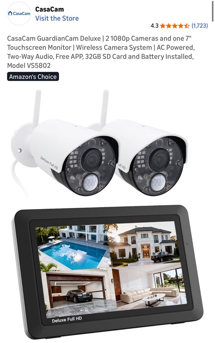 CasaCam GuardianCam Deluxe 2 1080p Cameras and one 7 Touchscreen Monitor