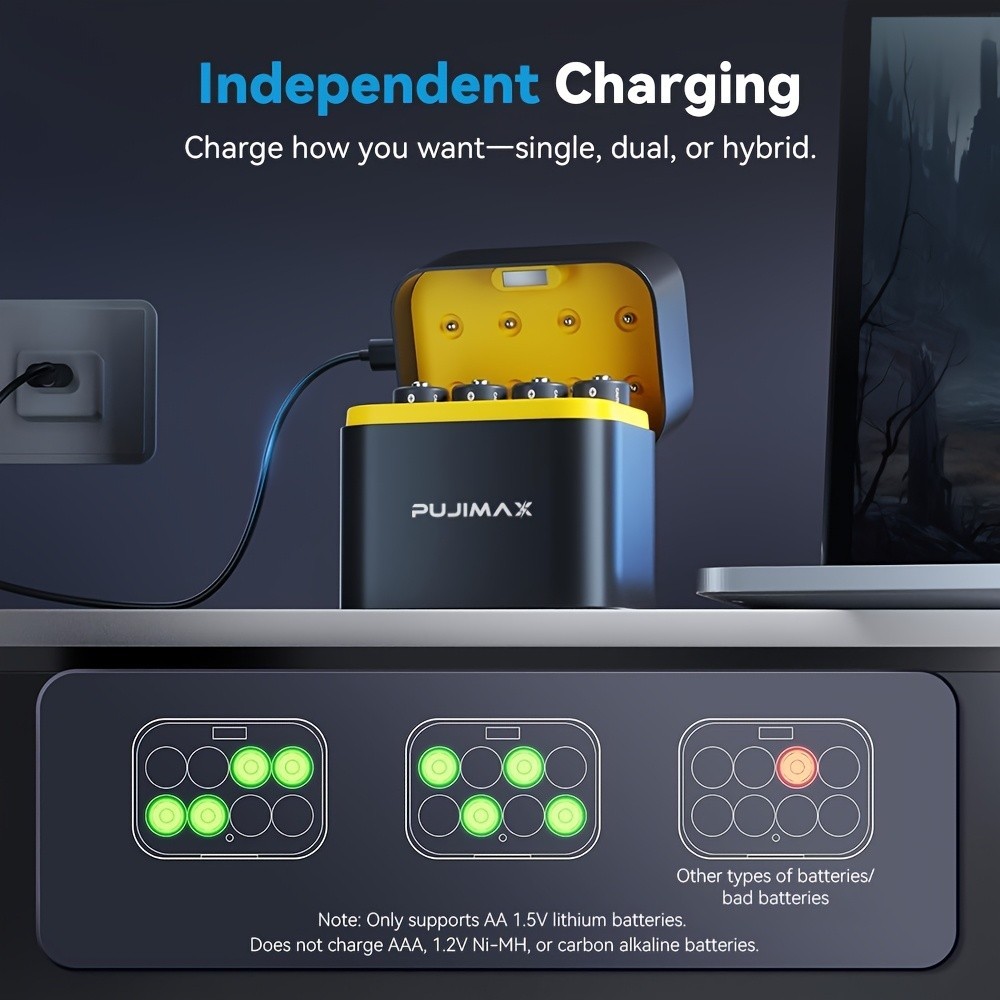 как выглядит PUJIMAX AA Lithium Batteries 4255mWh 8-Pack Rechargeable w/Smart Charger NEW фото