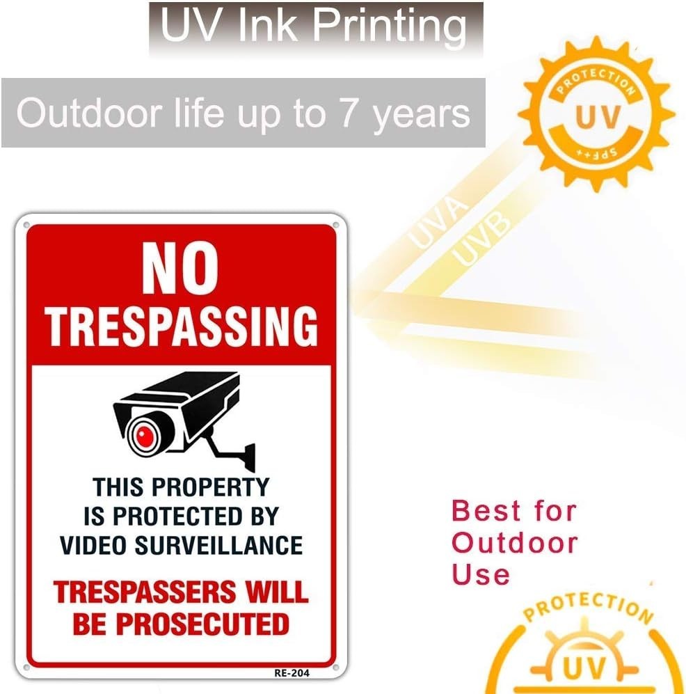 Video Surveillance Signs Outdoor Aluminum 10x14 Inch No Trespassing 4-Pack