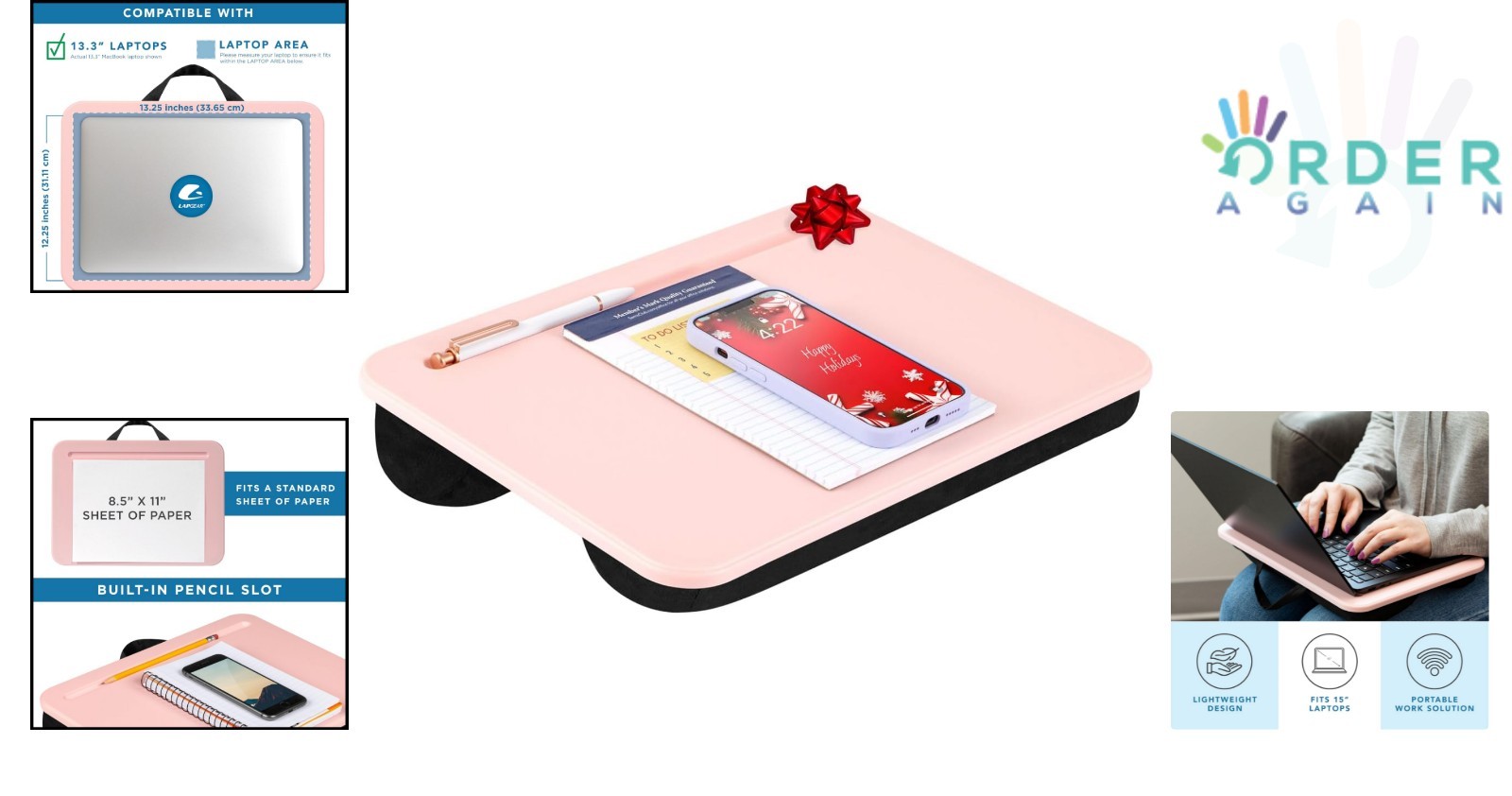 Compact Lap Desk Rose Quartz 15 Inch Laptop Portable Carry Handle Stability
