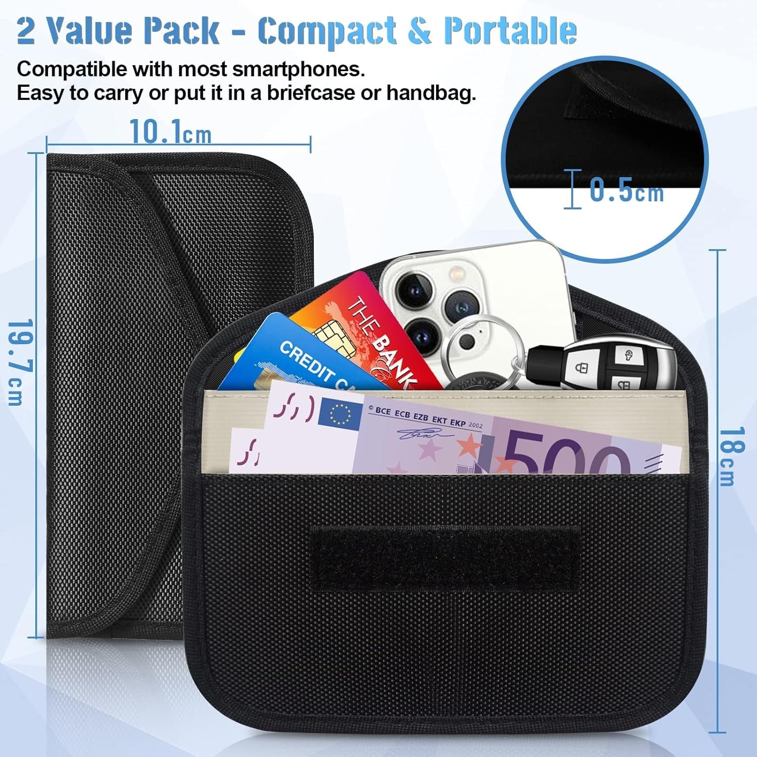 Faraday Bag Signal Blocking Pouch for Phone and Car Key 2 Pack