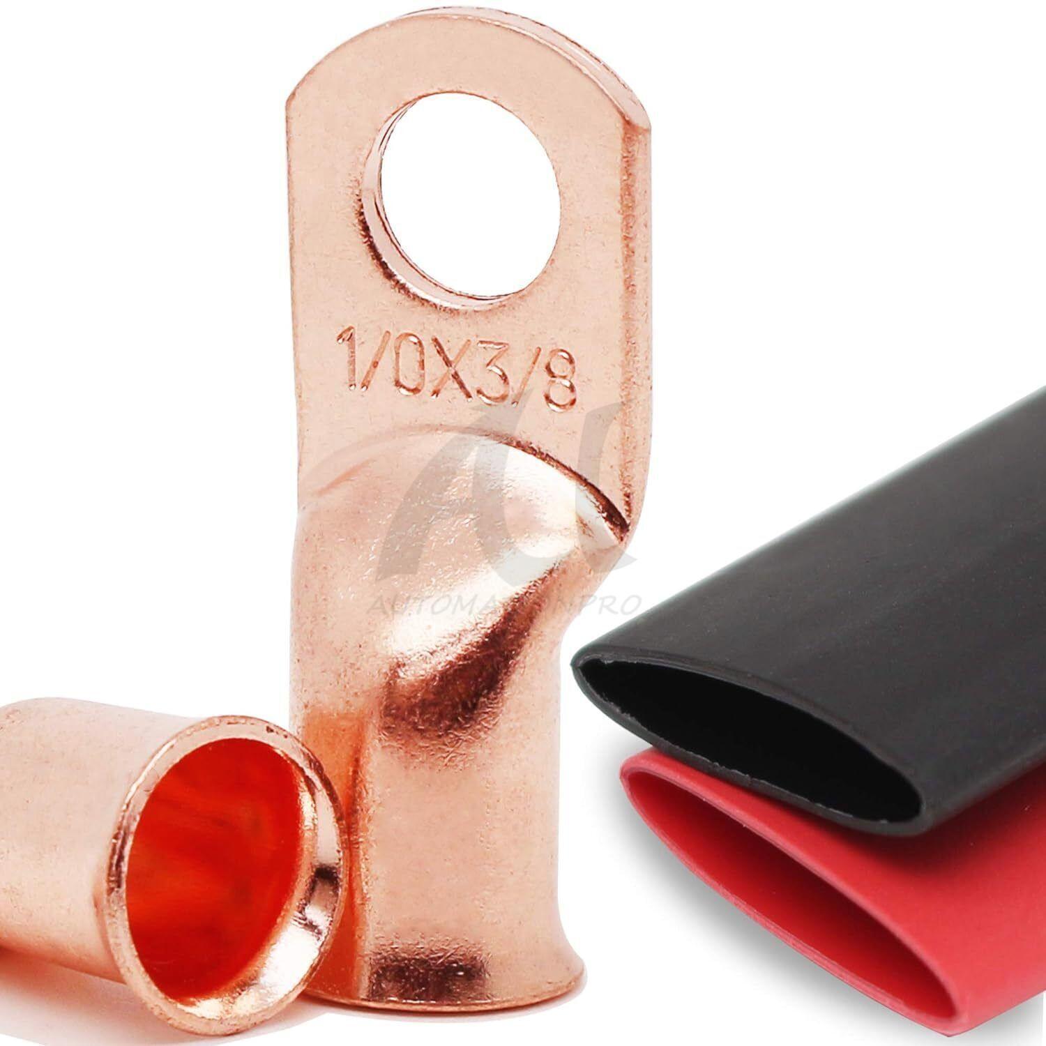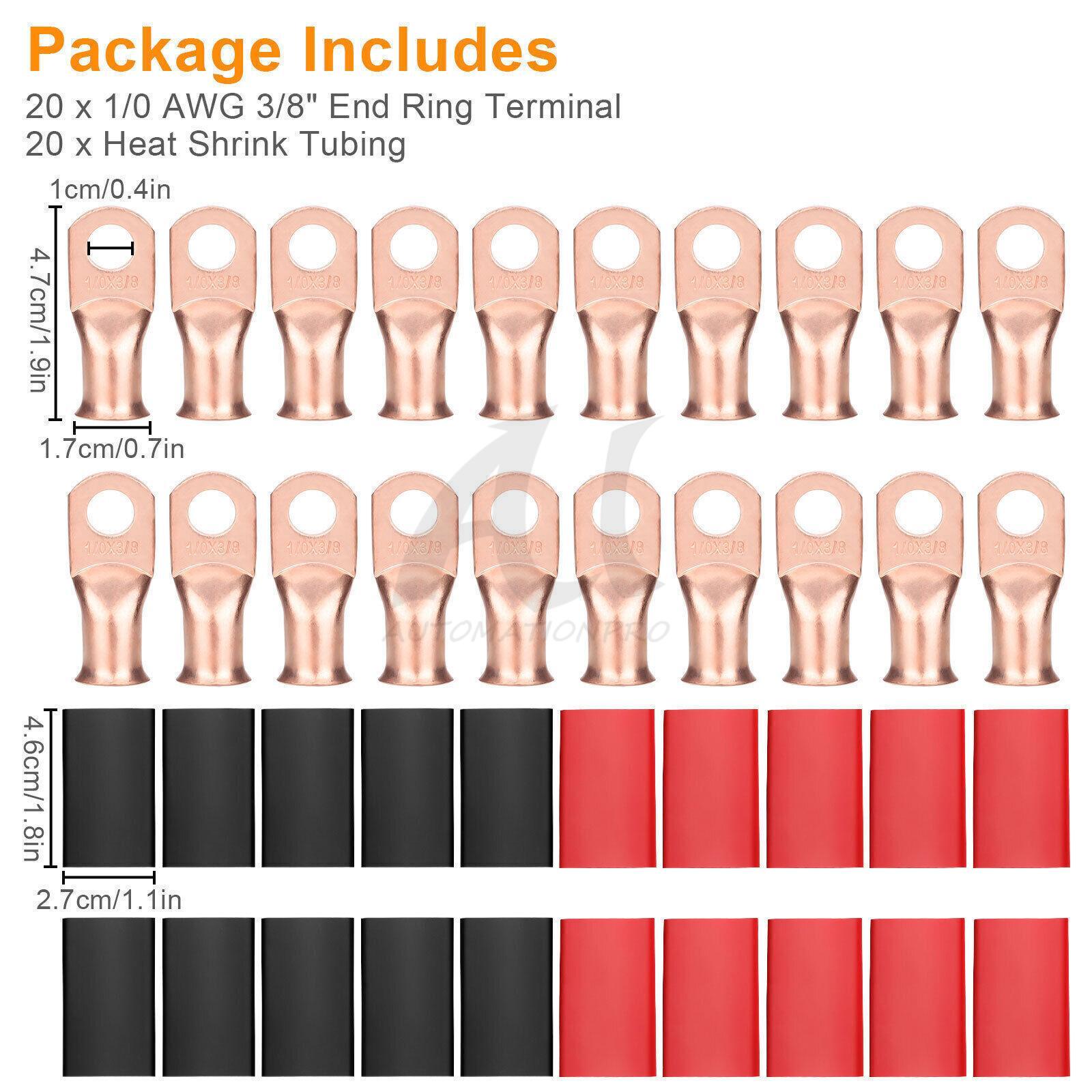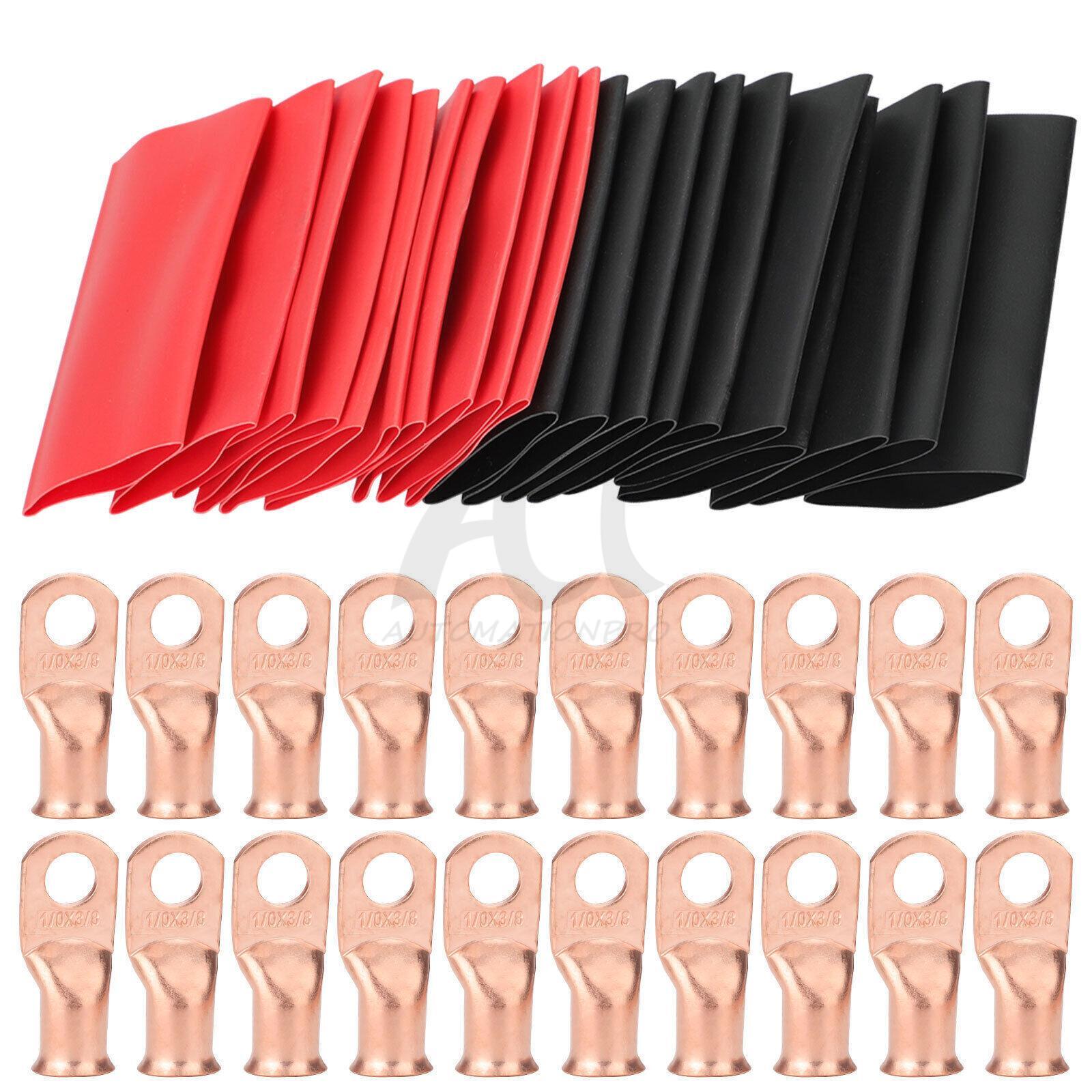 40 pcs 1/0 AWG Gauge Copper Lugs w/RED BLACK Heat Shrink Ring Terminals Set