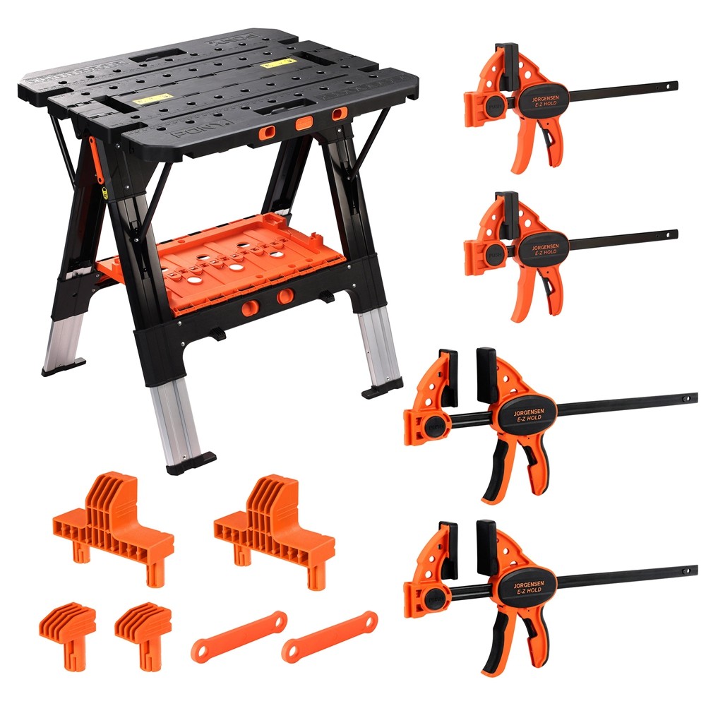 Pony 2-in-1 Work Bench Portable with 4pc Clamp 4pc Bench Dog, 2pc Safety Strap