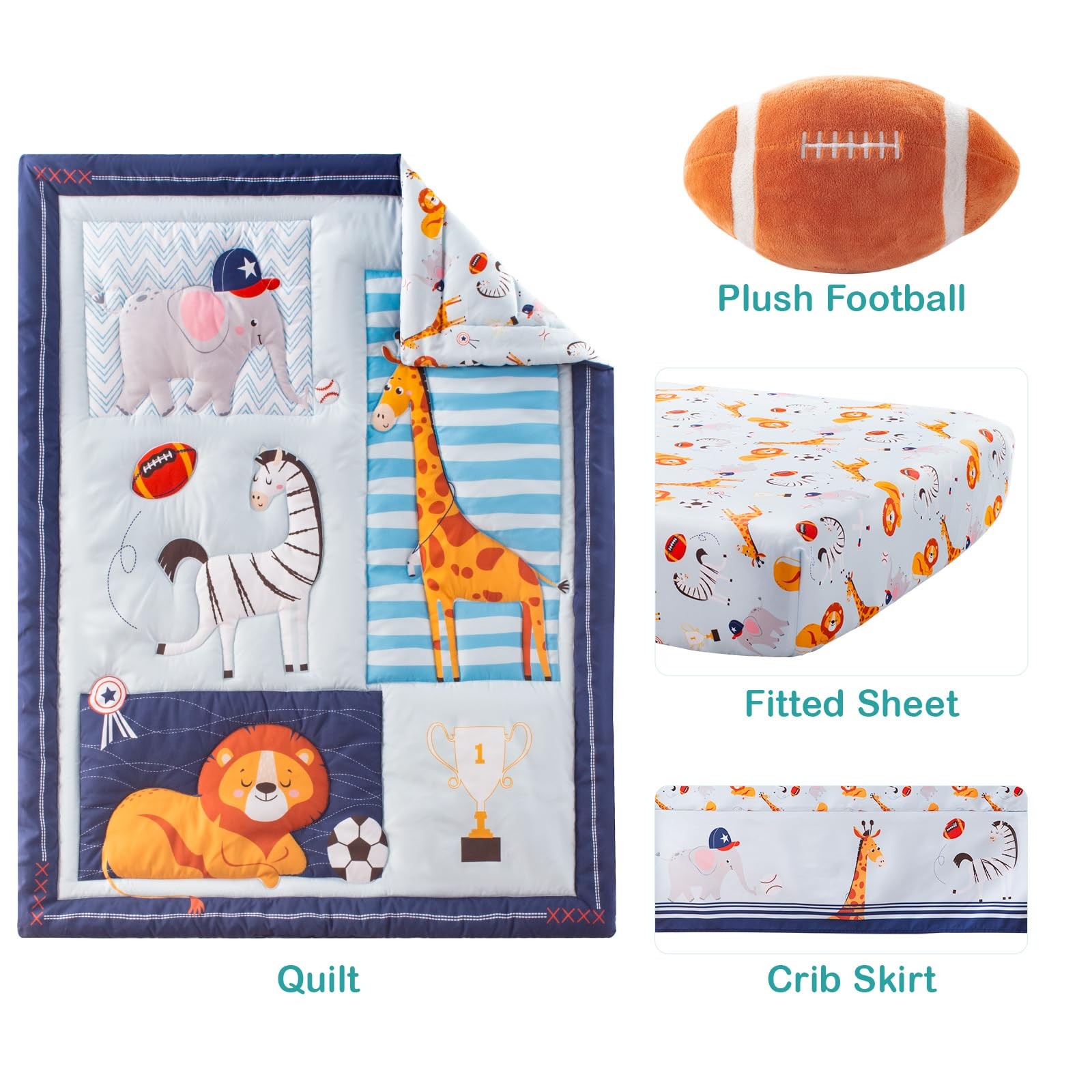 Included Components: Bed Skirt, Comforter, Fitted Sheet, Plush Football