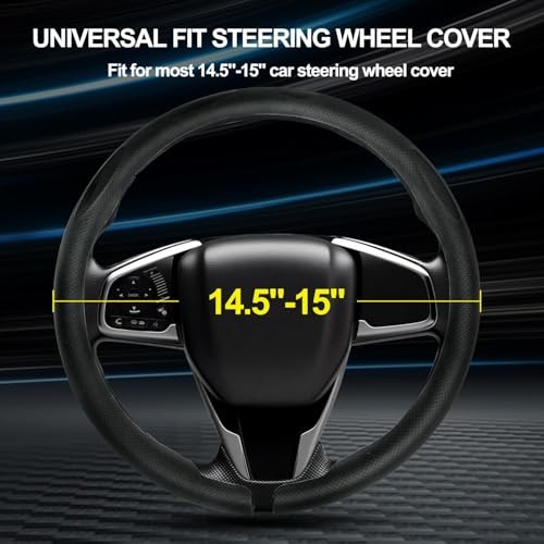 Nappa Leather Steering Wheel Cover Ultra-Thin, Breathable Non-Slip Black