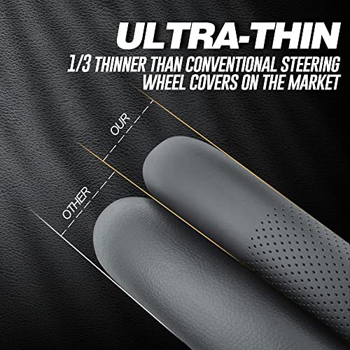 LKWLIKEI Nappa Premium Leather car Steering Wheel Cover, Non-Slip, Black