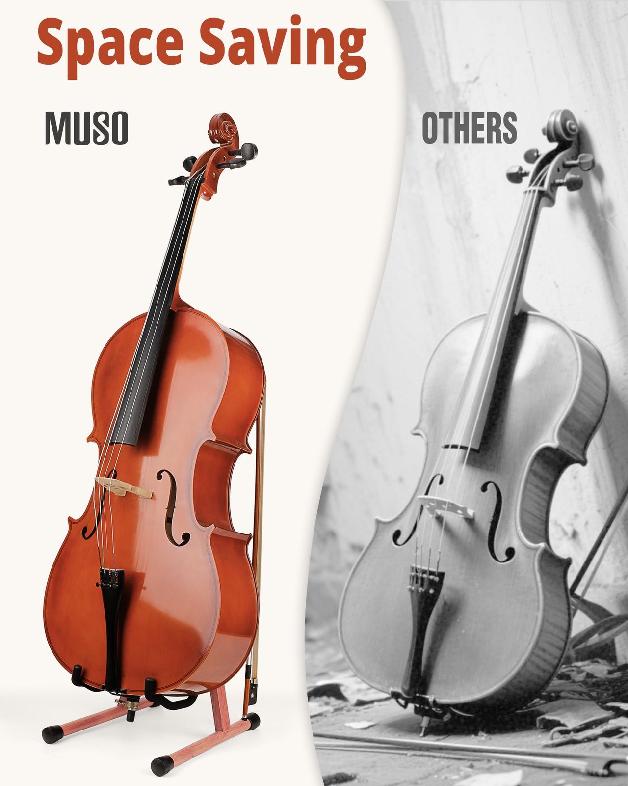 Cello Stand with Bow Holder,A-Frame Floor Stand with Padded Foam, Handcrafted...