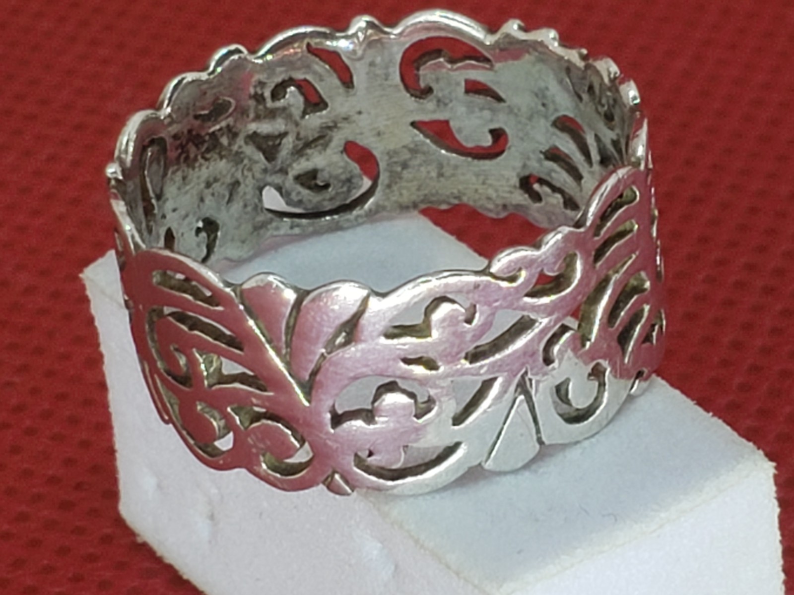 как выглядит SIZE 8 Vintage Sterling Silver Filigree Spiral Swirl Cut Out Ring фото