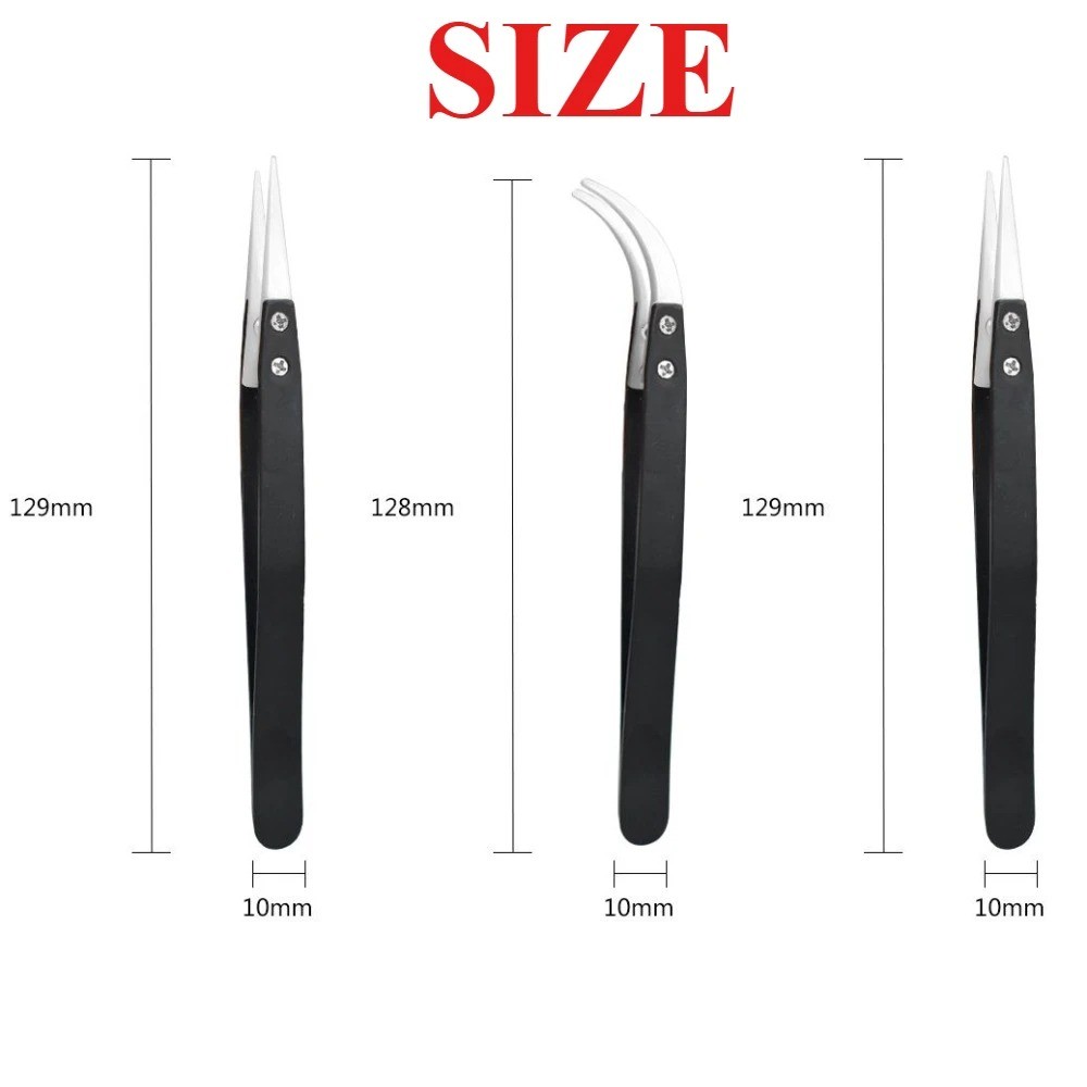3Pcs Anti-Static Ceramic Tweezers Set Stainless Steel, Insulated Tips