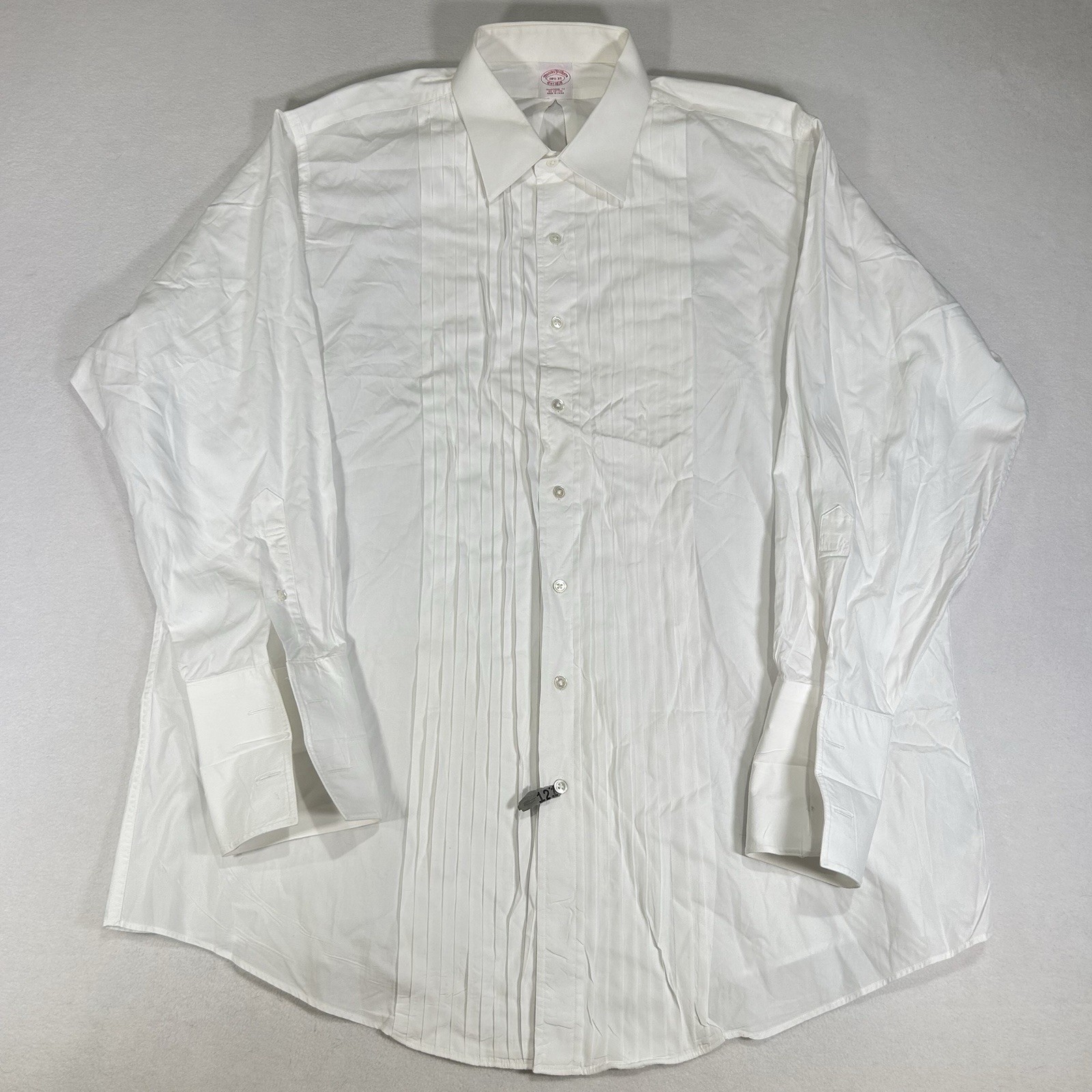 Brooks Brothers Tuxedo Shirt Mens 18.5 35 White French Cuff Pleated Traditional