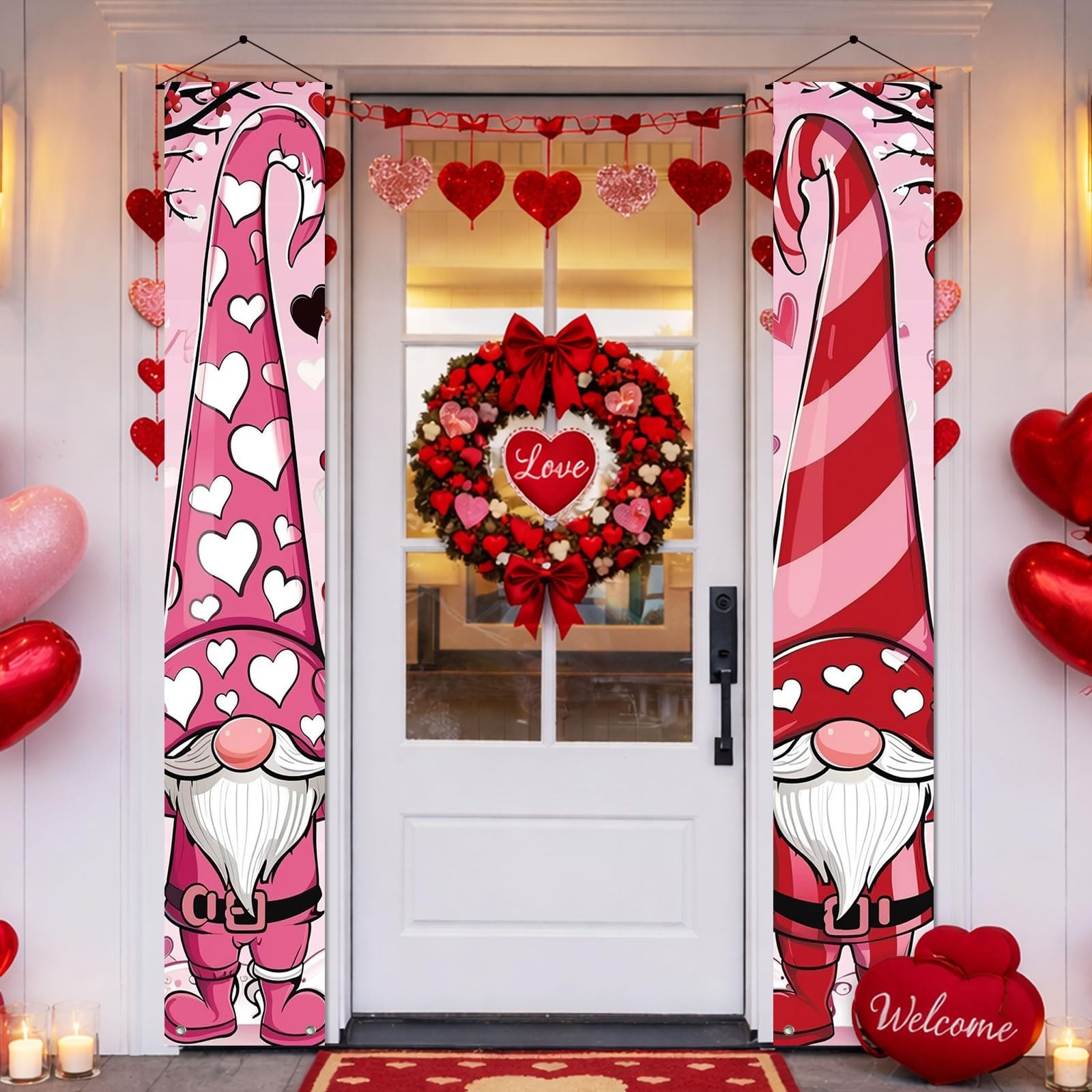 Valentines Day Banner Happy Valentines Day Gnome Porch Sign Wedding Anniversa...