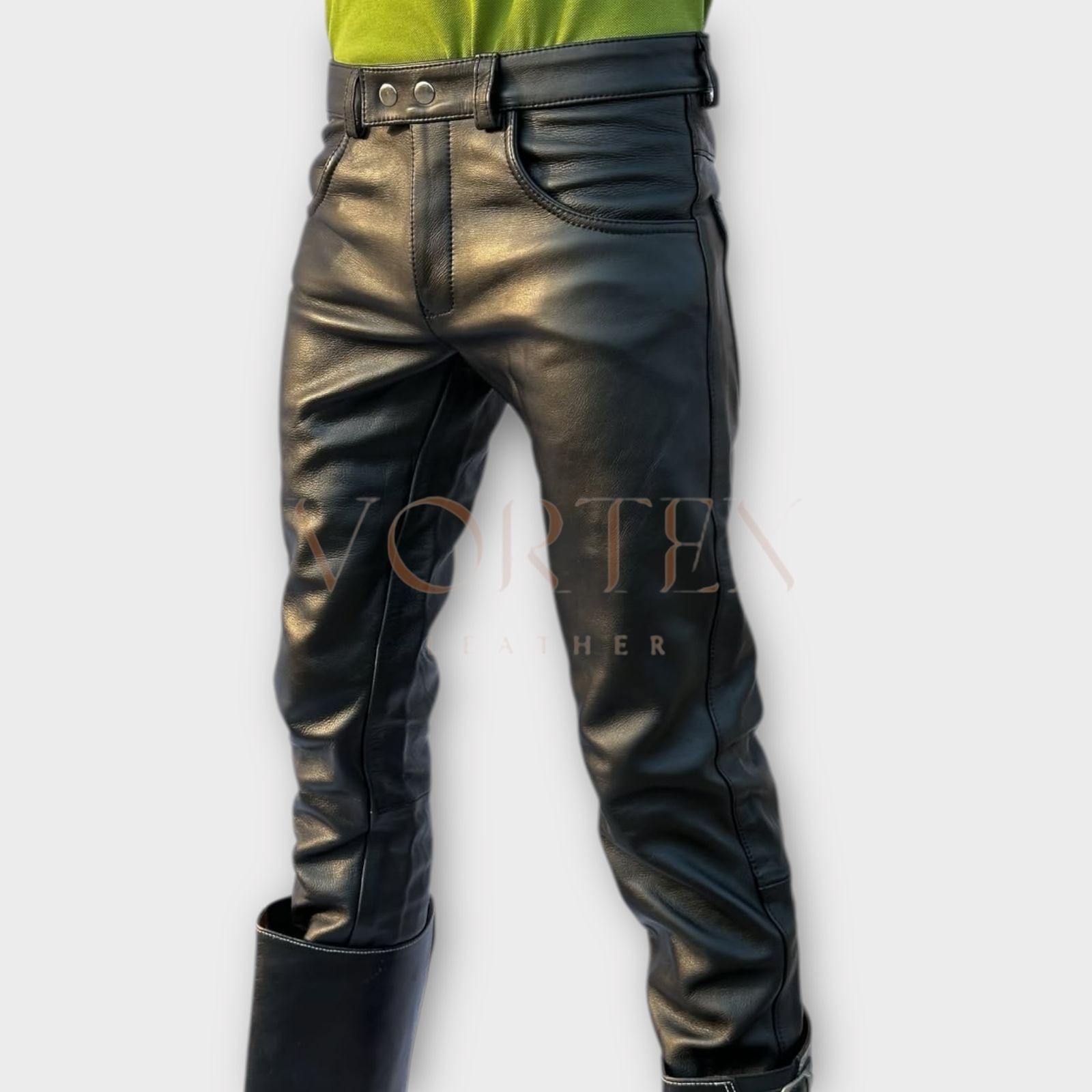 Men's Black Leather Dress Pant In Genuine Soft Lambskin Leather Dress Pant