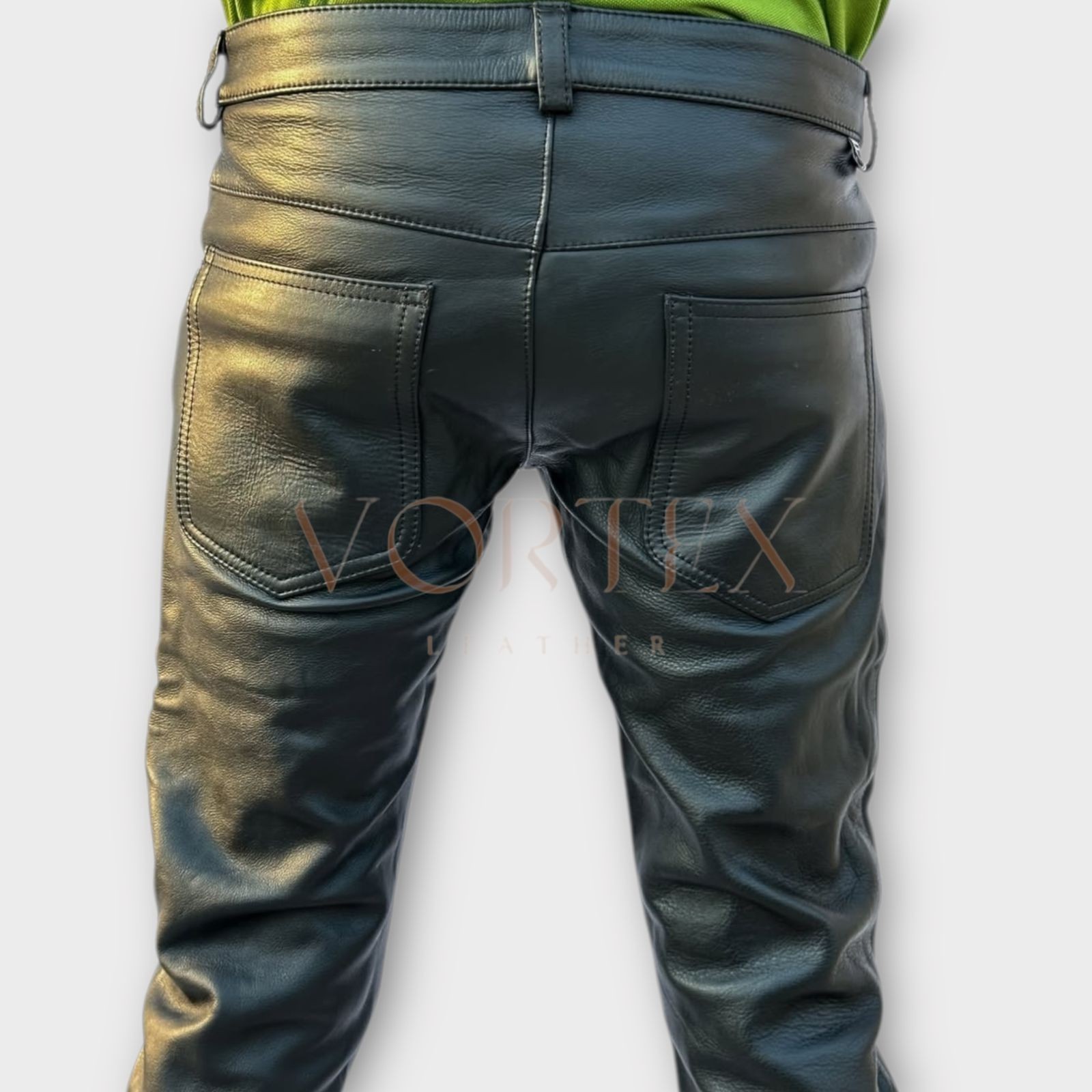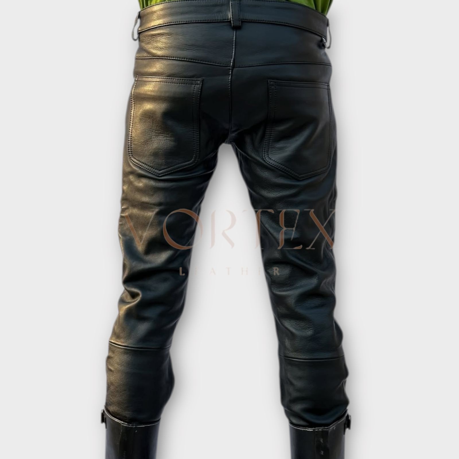 как выглядит Mens Black Leather Dress Pant In Genuine Soft Lambskin Leather Dress Pant фото