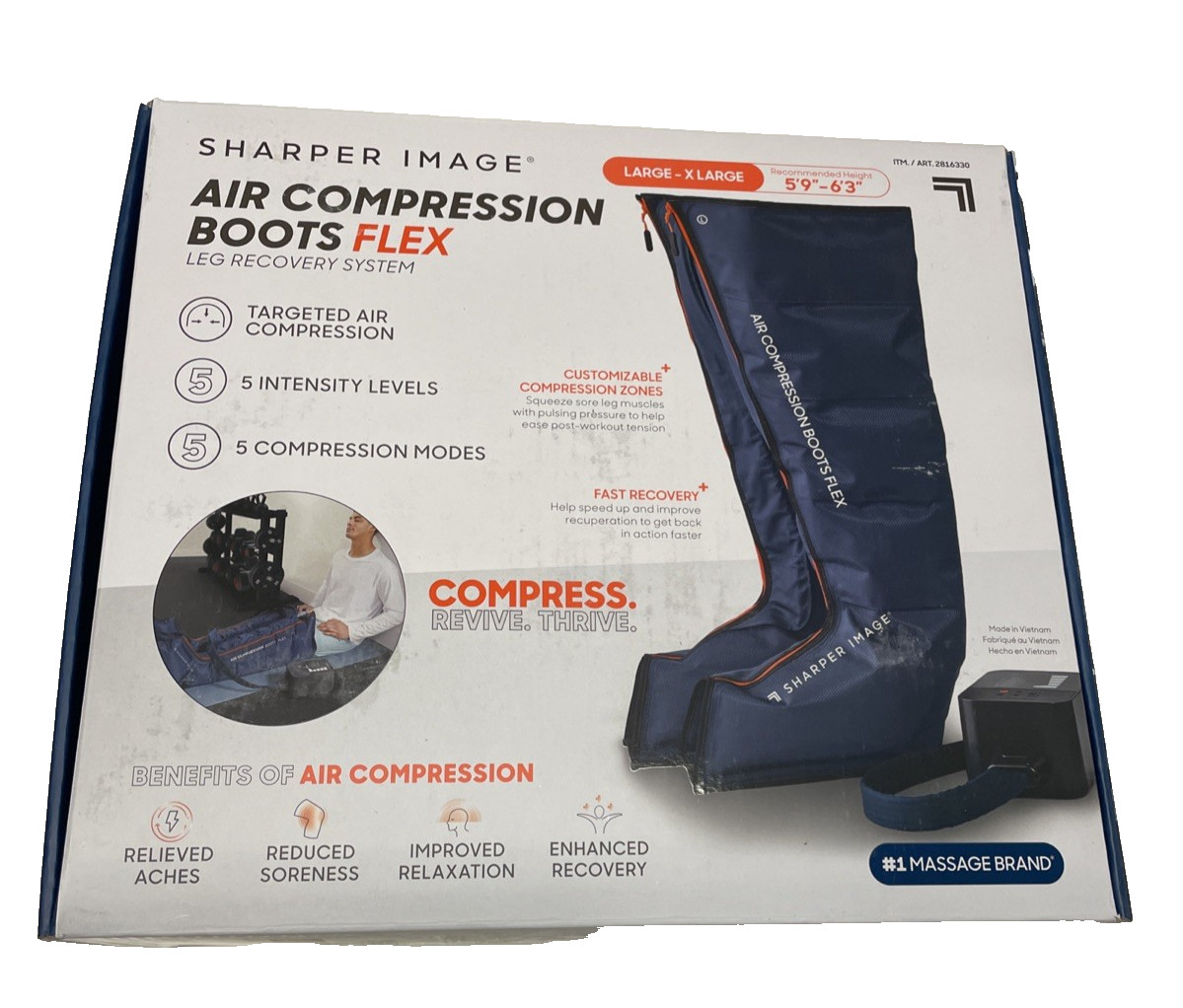 Sharper Image Flex Air Compression Boots Leg Recovery System Blue, Size Large/XL