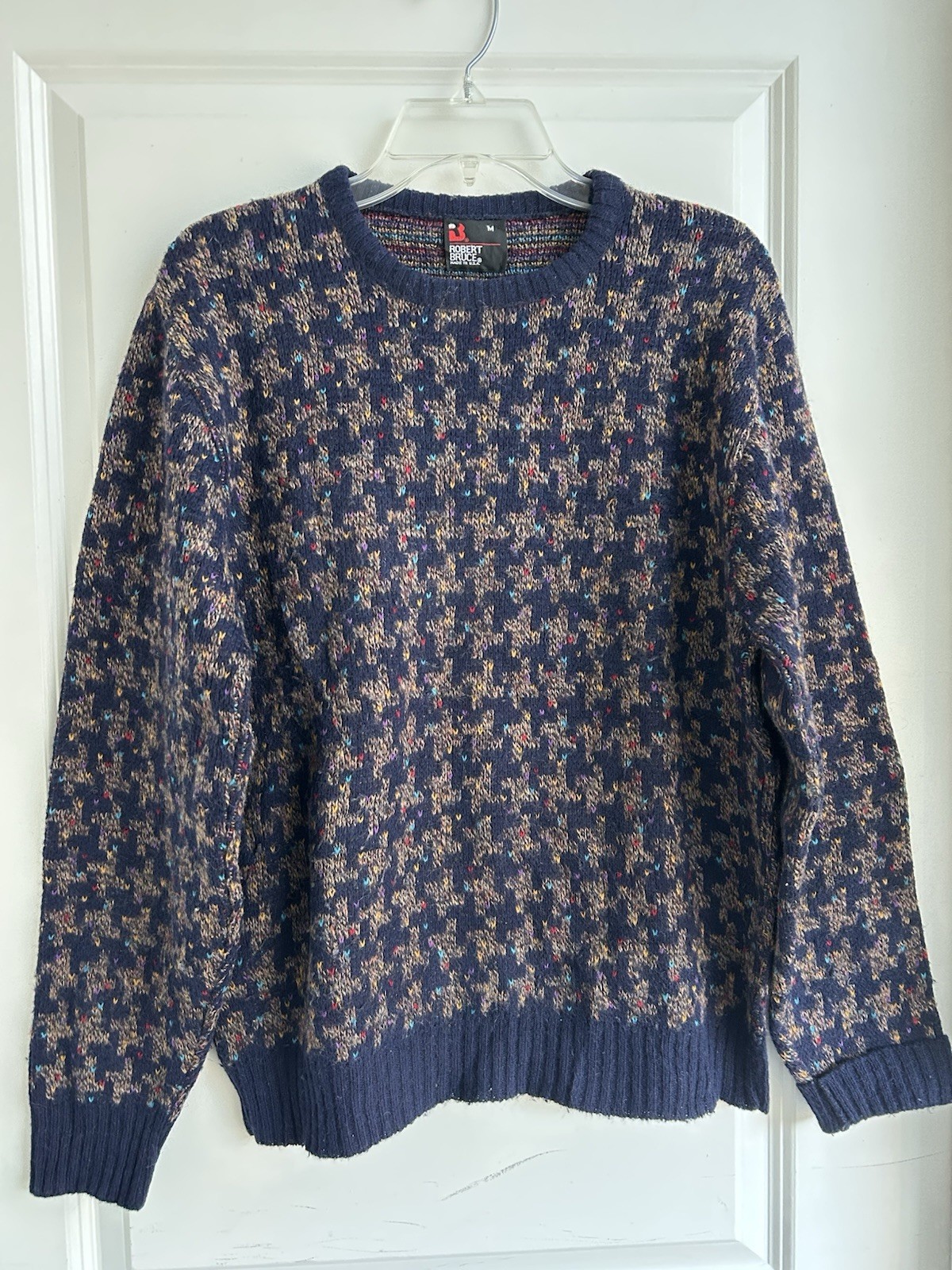 Vtg Robert Bruce Sweater Mens M Blue Houndstooth Wool Knit Pullover USA Made