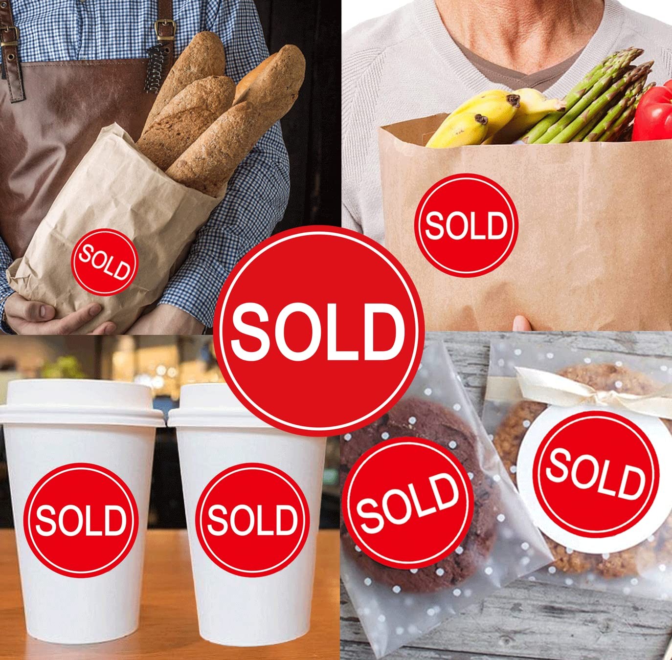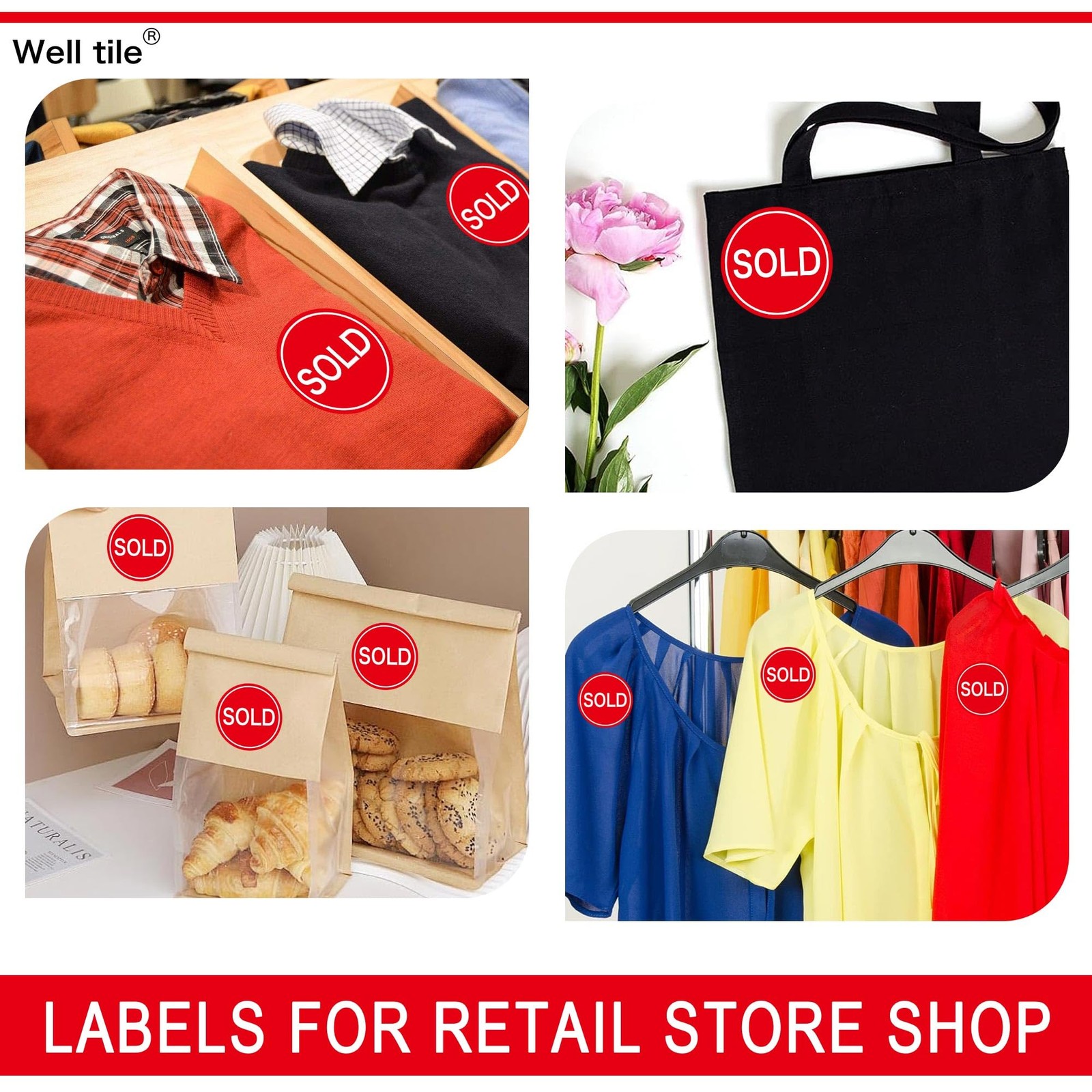 2 Inch Sold Stickers Fluorescent Red Labels - Point of 2 inch,