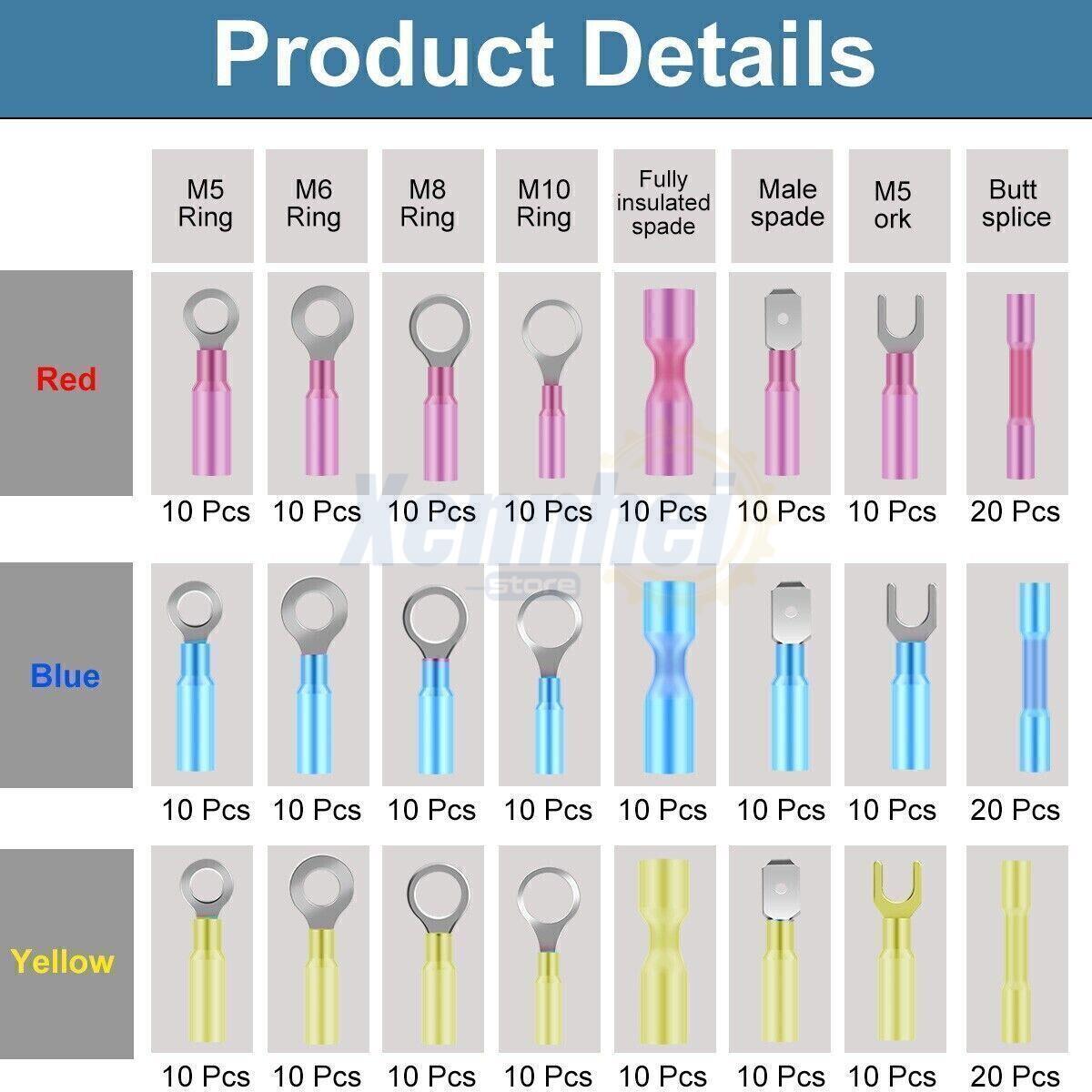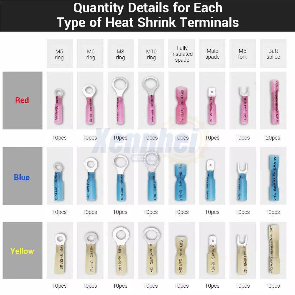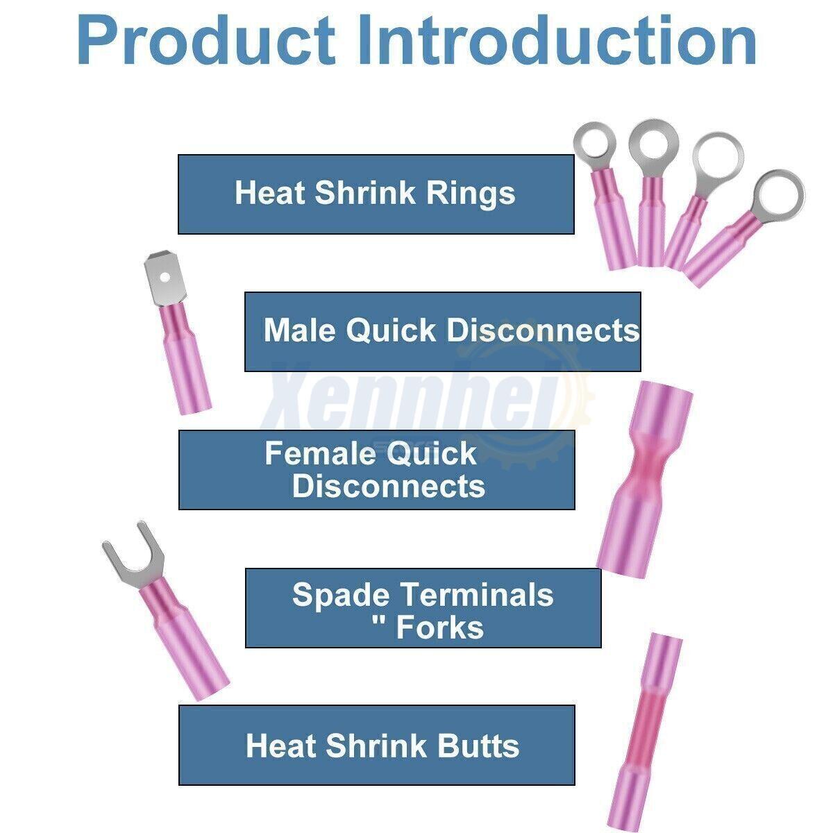 250x Heat Shrink Wire Connectors Electrical Ring Fork Spade Crimp Terminals Kit