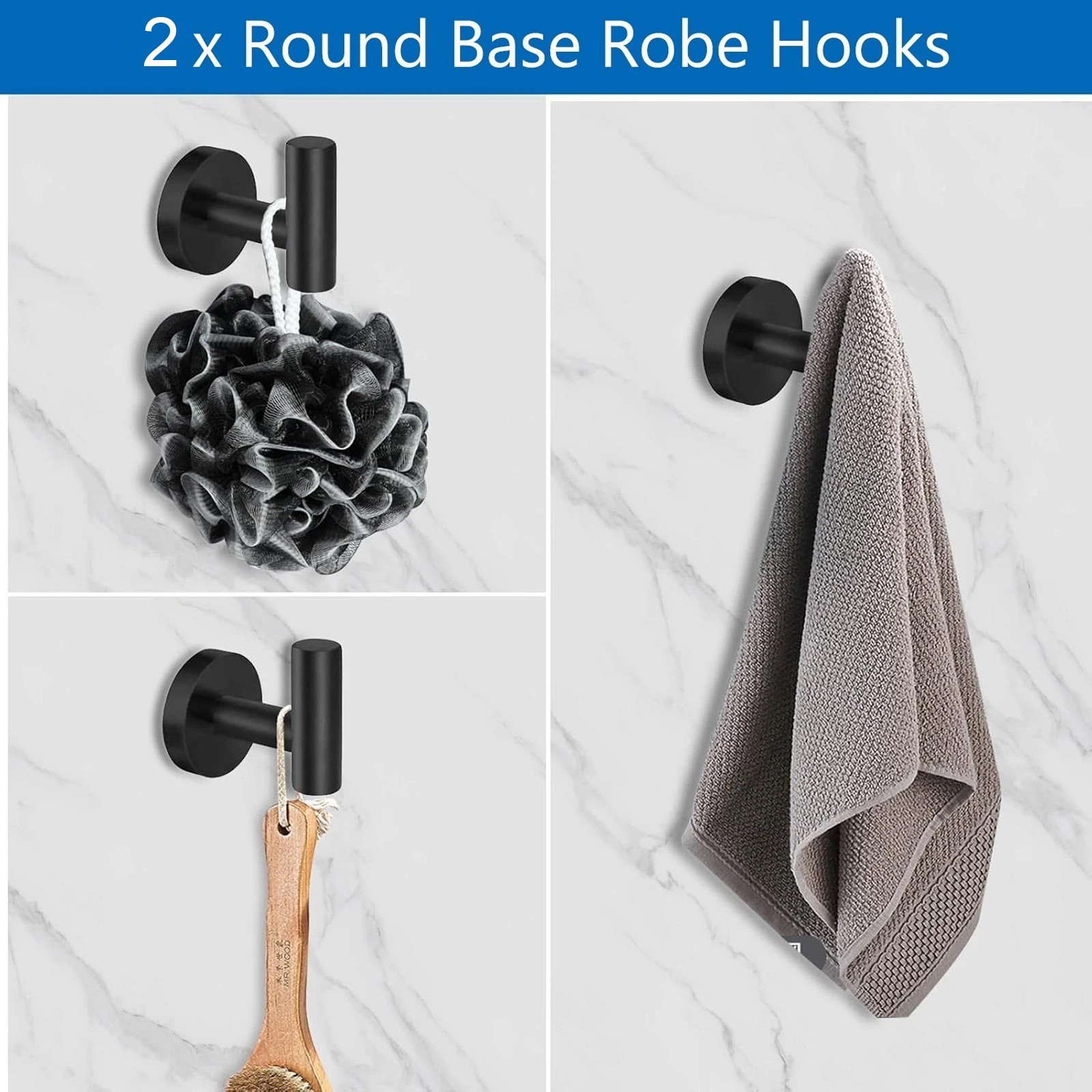 Set Includes: 1× Tower Bar, 2 × Wall Hooks, 2 x Adhesive Hooks, 1 × Tower Ring, 1 × Toilet Paper Holder