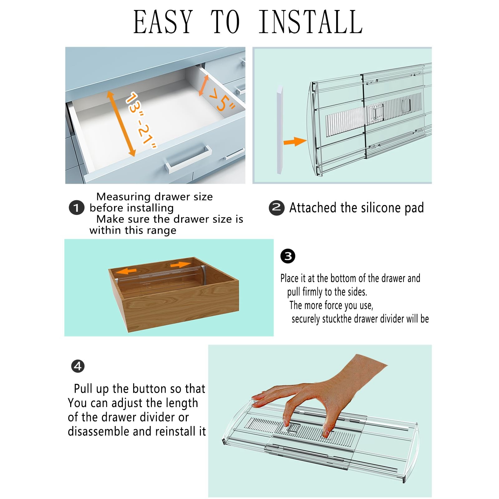 4 Pack Adjustable Drawer Dividers for Clothes,5 High Expandable From 13-21 ...