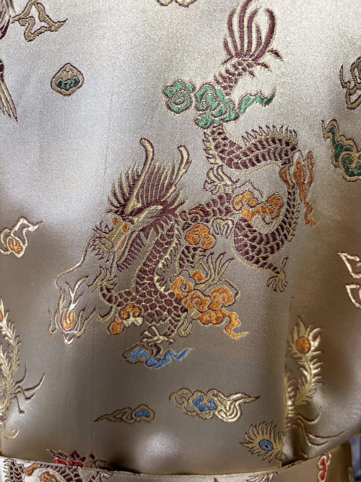 Gold Dragon Phoenix Kimono Robe Womens One Size Satin Belted 3/4 Sleeve Pockets
