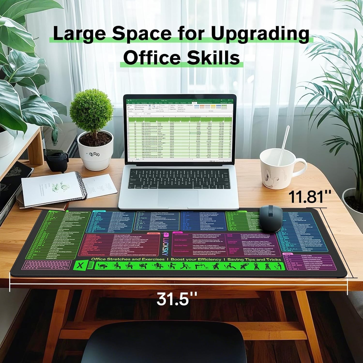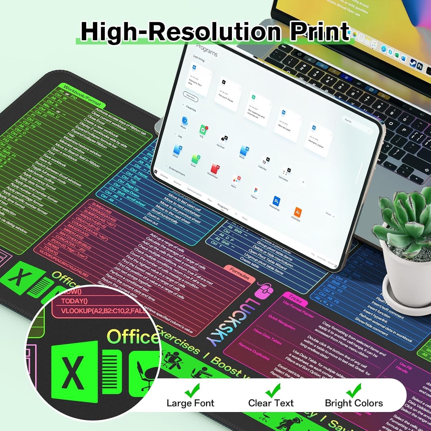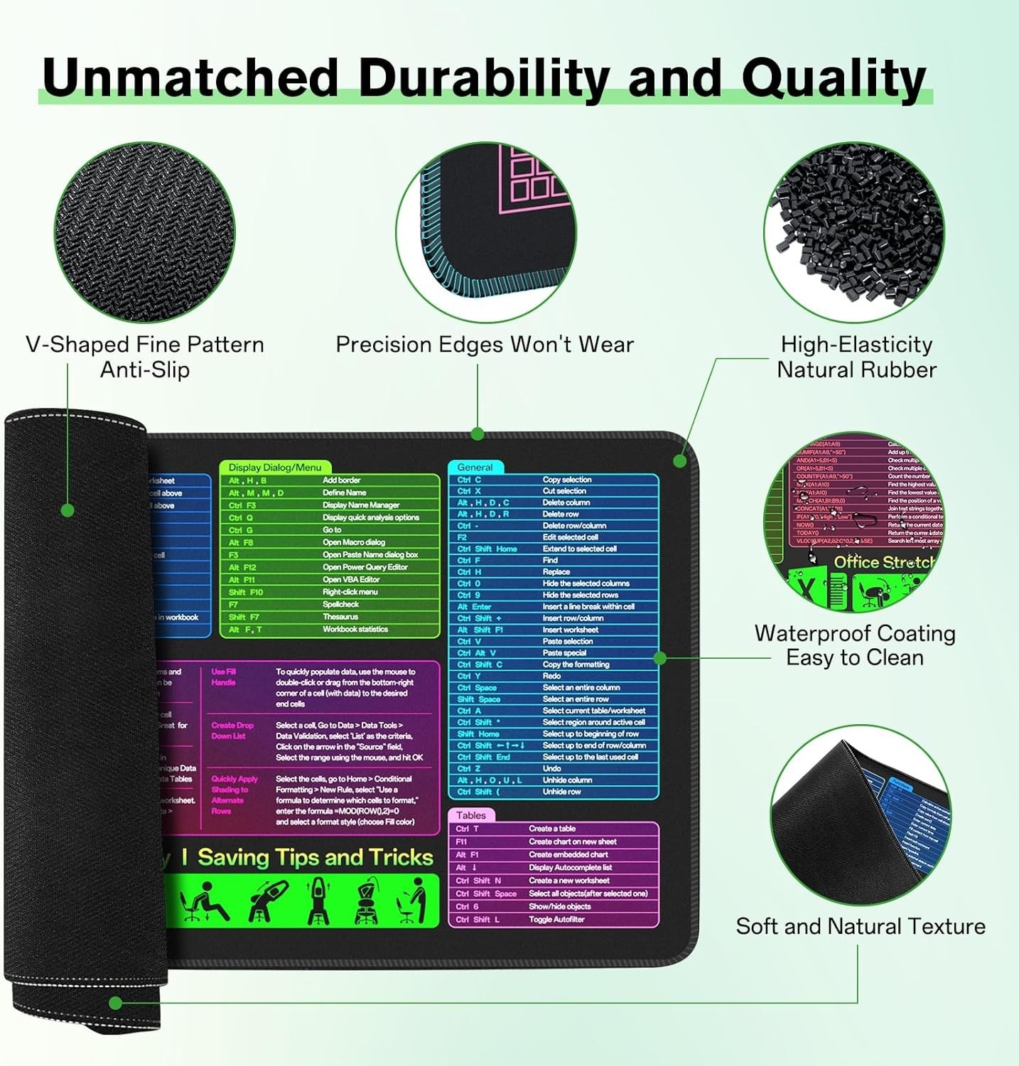 Large Excel Cheat Sheet Desk Pad Mousepad 150 Shortcuts Non Slip Sewn Edge